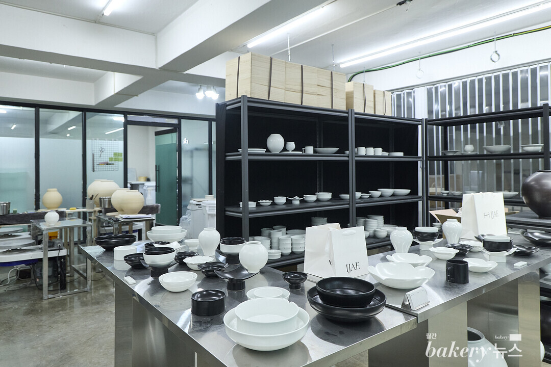 이재의 도자기는 흰색과 검은색, 딱 두 가지로 이뤄져 있는데, ‘흠집이 쉽게 난다’ 같은 컴플레인을 최소화하는 유약을 만들기 위해 1년 동안 수많은 테스트를 거쳤다. “처음에 기성 유약을 사용해 봤는데 원하는 반 유광 톤이 아니기도 했고, 생활 흠집에 취약하다는 느낌이 들었어요. 매트한 질감을 살리되 약간의 반짝임을 더해 지금의 유약을 만들었습니다.” 이재는 컬러와 편리한 사용감 외에 깔끔한 디자인으로도 인기가 많은데, 마치 석고 캐스팅 기법으로 일정하게 뽑아낸 듯하다. 옛날에 비해 도예 기술과 장비가 많이 발전하며 충분히 손으로도 이렇게 깔끔한 디자인을 뽑아낼수 있다는 것을 보여주고자 했다는데, 아직도 여전히 수공예라고 이야기 하면 놀라는 손님들이 대다수다. 이러한 이재만의 멋을 알아본 ‘정식당’ 에서 최근 면기를 주문 제작하기도 하는 등 벌써 여러 레스토랑과 카페 에서 러브콜을 받는 중이다.