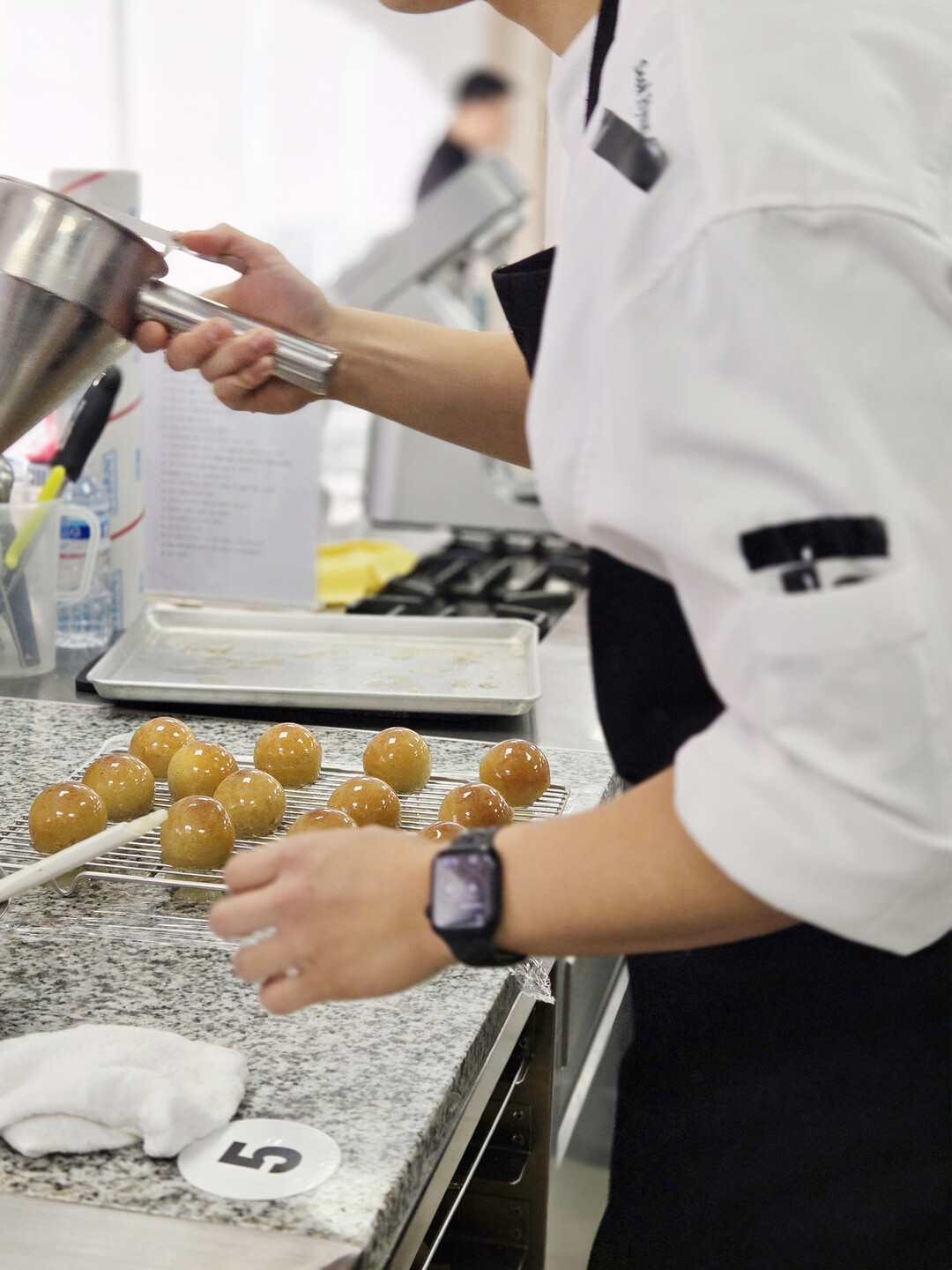 참가 선수들은 오전 10시 30분부터 오후 2시 30분까지 각자 준비해온 재료를 바탕으로 쉼 없이 작업을 이어갔다. 6명의 심사위원들은 경연 중간중간 선수들의 작업 과정과 위생을 체크하며 진지하게 심사에 임했고, 심사위원장을 맡은 성명주 셰프는 “두 가지 품목 반죽이 생각보다 까다롭다. 반죽에 대한 이해도가 뛰어난 선수에게 높은 점수가 주어질 것 같다”고 말했다. 이외에도 “제품에서 얼마나 네그리타 럼의 풍미를 잘 살리는지”, “두 가지 제품 본연의 특성을 얼마나 잘 나타내는 지”를 중요하게 본다는 심사위원들의 포인트가 있었다.