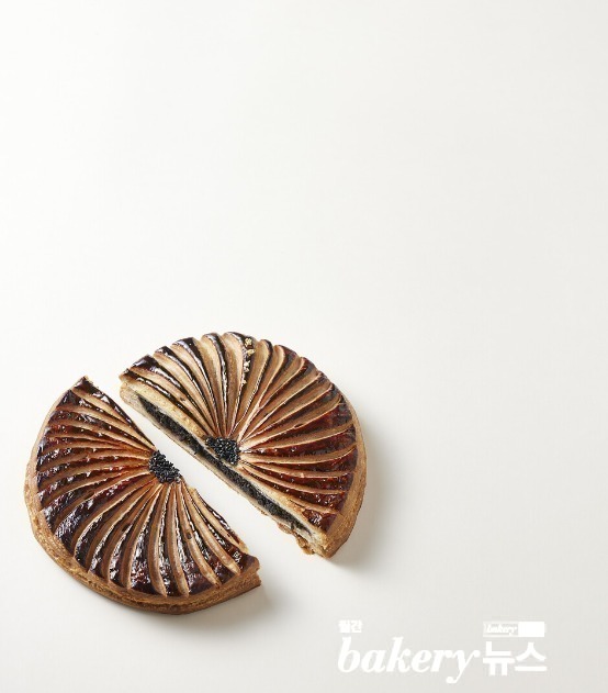 흑임자 아몬드 크림을 넣어 한층 더 깊은 고소함을 느낄 수 있는 ‘갈레트 데 루아 흑 임자’입니다. 버터리하면서 바삭한 푀이 타주 사이에 가득 담겨 있는 묵직한 흑임 자 아몬드 크림이 가운데에서 중심을 잡 아줍니다. 퍽퍽하지 않으며, 입 안에서 촉 촉하고 부드럽게 마무리되어 부담 없이 즐길 수 있습니다. 올해는 갈레트 데 루아 흑임자로 색다른 1월을 맞이해 보세요.