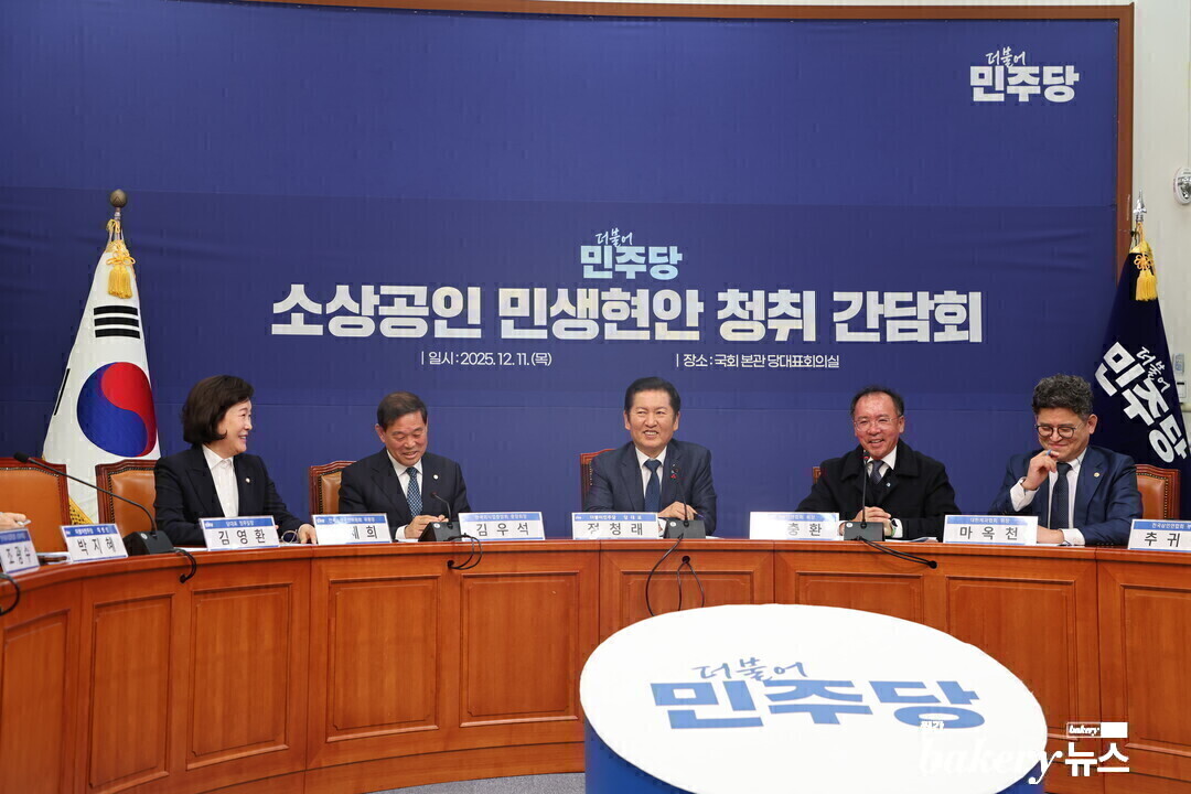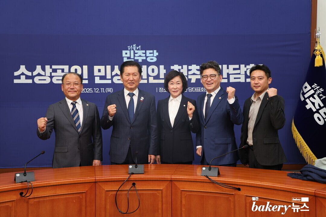 소상공인 주요단체가 12월 11일 국회 대표회의실에서 열린 ‘소상공인 주요단체 민생현안 청취 간담회’에서 제과업계의 산업안전보건 강화와 인력난 해소를 위한 정책적 지원을 요청했다. 간담회에는 정청래 더불어민주당 당대표를 비롯해 당 지도부, 전국상인연합회, 한국외식업중앙회, 사단법인 대한제과협회 등 주요 단체가 참석했다.