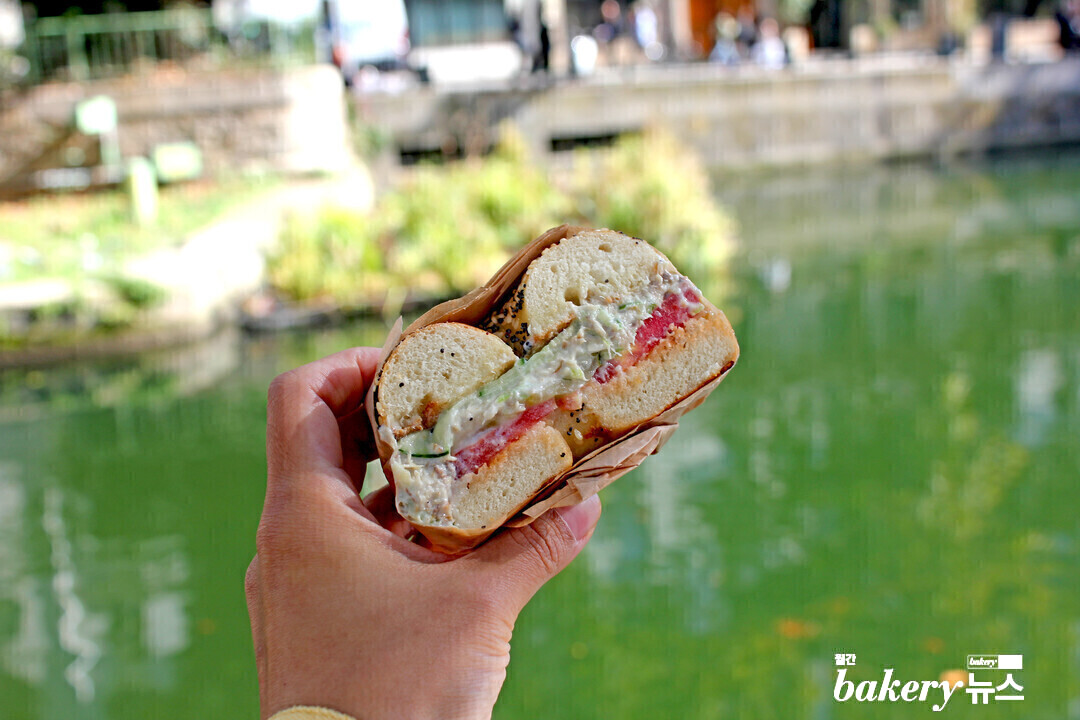 취재를 마치고 나오면서 꼭 한 번 맛보고 싶었던 화이트 피쉬 샐러드 샌드위치를 포장했다. 화이트 피쉬는 본래 훈제향이 있는 담백한 생선류로 만드는 데, 비슷한 생선을 파리에서 찾기 힘들다 보니 맛이 비슷한 고등어로 만들고 있다. 마요네즈, 샐러리, 레몬즙 등을 더해 만든 밥스 베이글 숍만의 화이트 피쉬 샐러드는 느끼하거나 비린 맛이 전혀 없었다. 은은한 훈제 향 덕분인지 흔히 맛보는 참치 마요네즈보다 담백한 느낌이었다. 토마토와 피클도 얇게 들어가 먹기 편하면서도 포인트를 더해주고, 따뜻하게 데워진 베이글이 부드럽고 쫀득해 마음까지 든든해지는 느낌이었다.