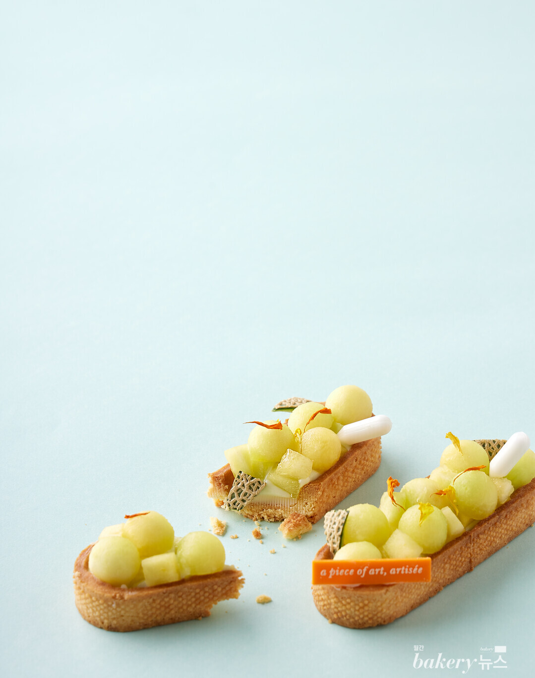 8 ⑦ 위에 적당한 크기로 재단한 멜론을 올려 마무리한다