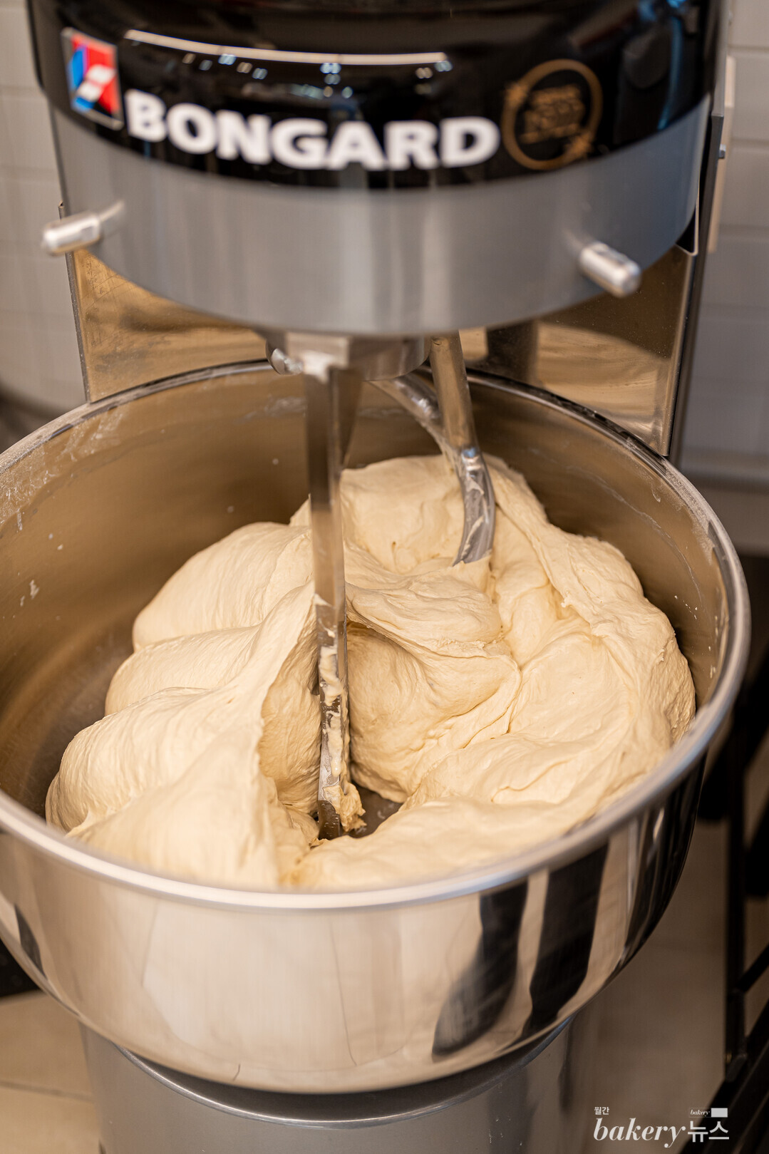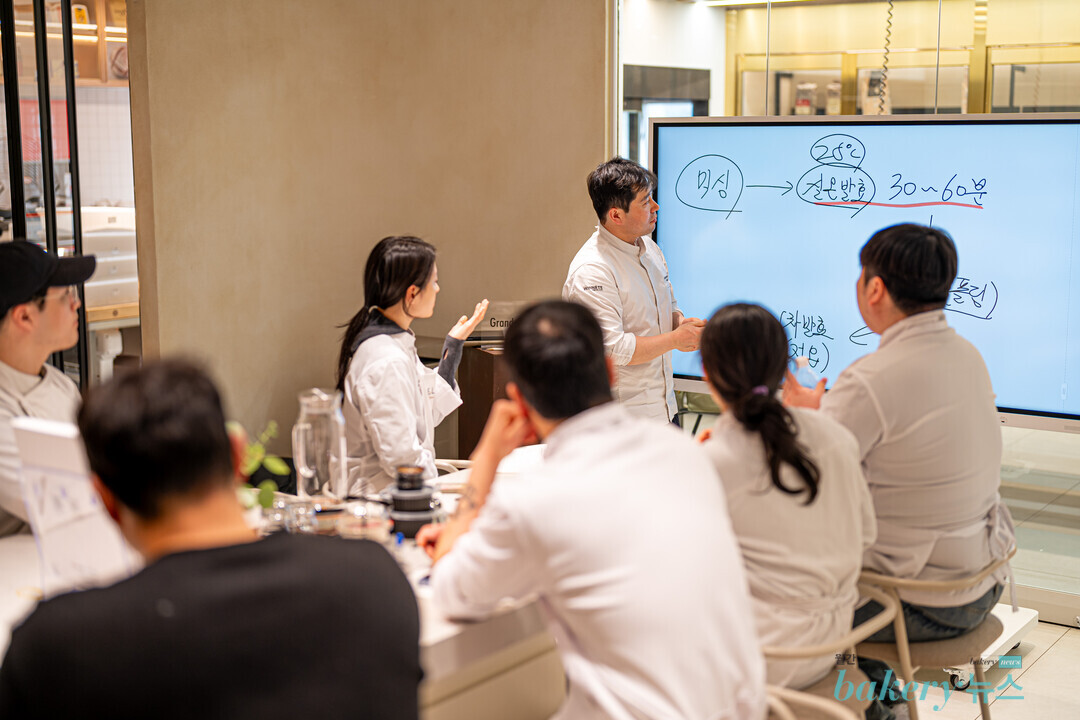 특히 엄 셰프는 제품 실습만큼 이론 교육을 강조했는데, 이에 대해 “정해진 작업 루틴을 습관적으로 따르는 것만으로는 변수에 대비하고 좋은 제품을 만들기 어렵다. 이론에 대한 이해가 수반돼야 한다”고 말했다. 그는 실습실인 베이커리룸과 전자 칠판이 설치된 라운지룸을 오가며 액체 르방과 고체 르방의 차이점, 오토리즈의 효과, 믹싱 후 실온 발효를 진행하는 이유 등을 밝혔다. 엄 셰프는 세미나를 마무리하며 “트레디션 T65는 제빵사의 작업성에 초점을 맞춰 개발돼, 평소 프랑스 밀가루가 국내 밀가루의 스펙과 다른 점 때문에 익숙하지 않았던 분들도 좀 더 수월하게 프랑스빵을 생산할 수 있도록 돕는다”며 “트레디션 T65로 만든 기본 반죽을 이용해 클래식은 물론 스위트와 세이버리 프랑스빵으로 다양하게 활용해 보길 바란다”고 전했다.