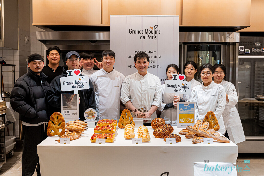 ‘그랑 물랑 드 파리 핸즈온 트레이닝’이 지난 2월 11일부터 12일까지 양일간 ‘르 랩 서울(Le Lab Seoul)’에서 개최됐다. 이번 세미나는 올해부터 그랑 물랑 드 파리의 공식 앰버서더로 임명된 ‘아뜰리에 오네뜨’의 엄태일 셰프가 담당했다. 수업 주제는 ‘트레디션 T65 반죽의 다양한 활용법’이었다. 엄 셰프는 프랑스 전통 바게트 생산에 적합한 트레디션 T65의 특성을 활용해, 트레디션 T65로 만든 바게트 반죽을 베이스로 전통 바게트, 쁘띠빵 쇼콜라 오랑주, 빵 티그레, 참깨 바게트, 토마토 바질 포카치아를 선보였다.
