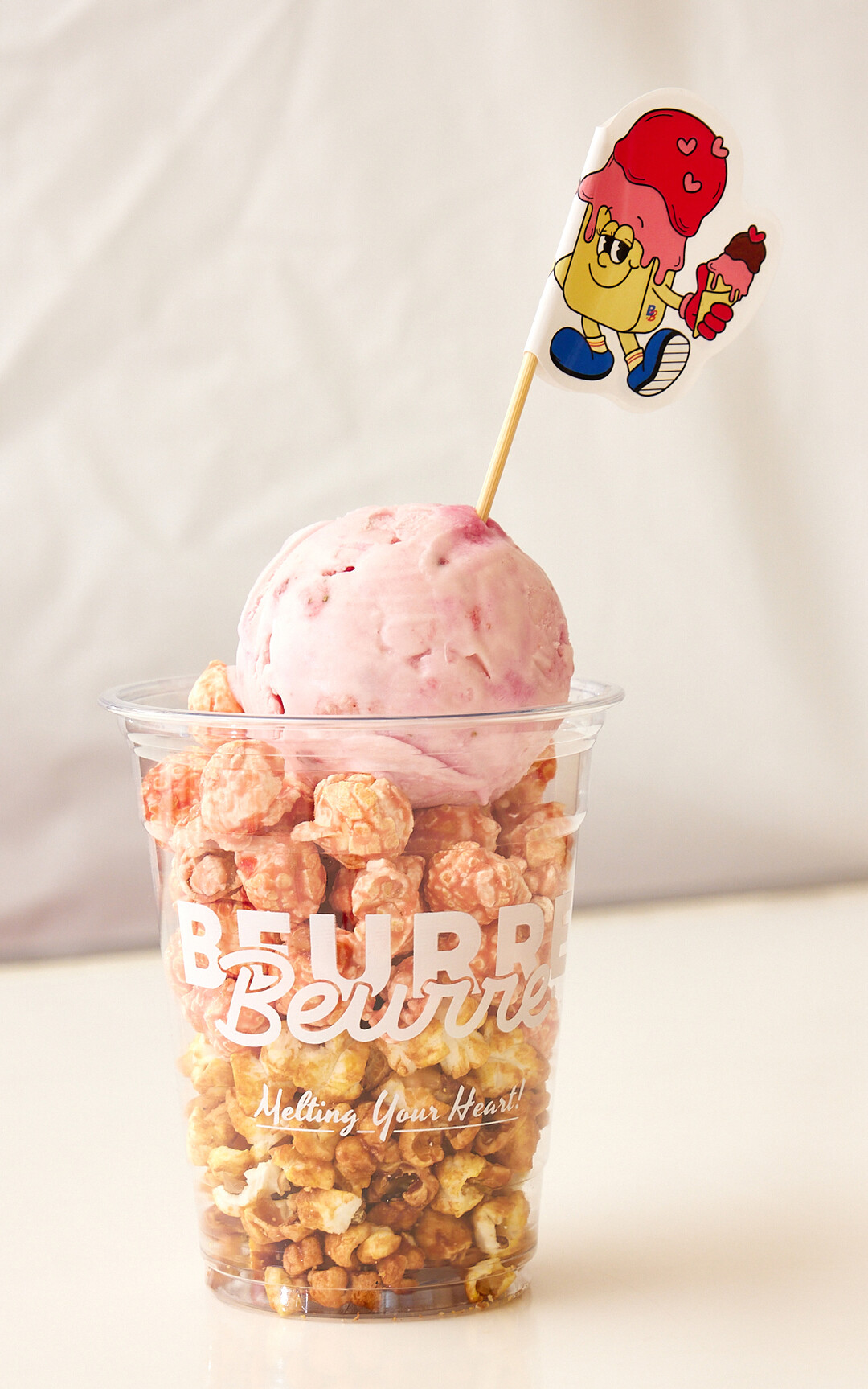 달콤한 팝콘 위로 원하는 아이스크림을 조합해 맛볼 수 있다.