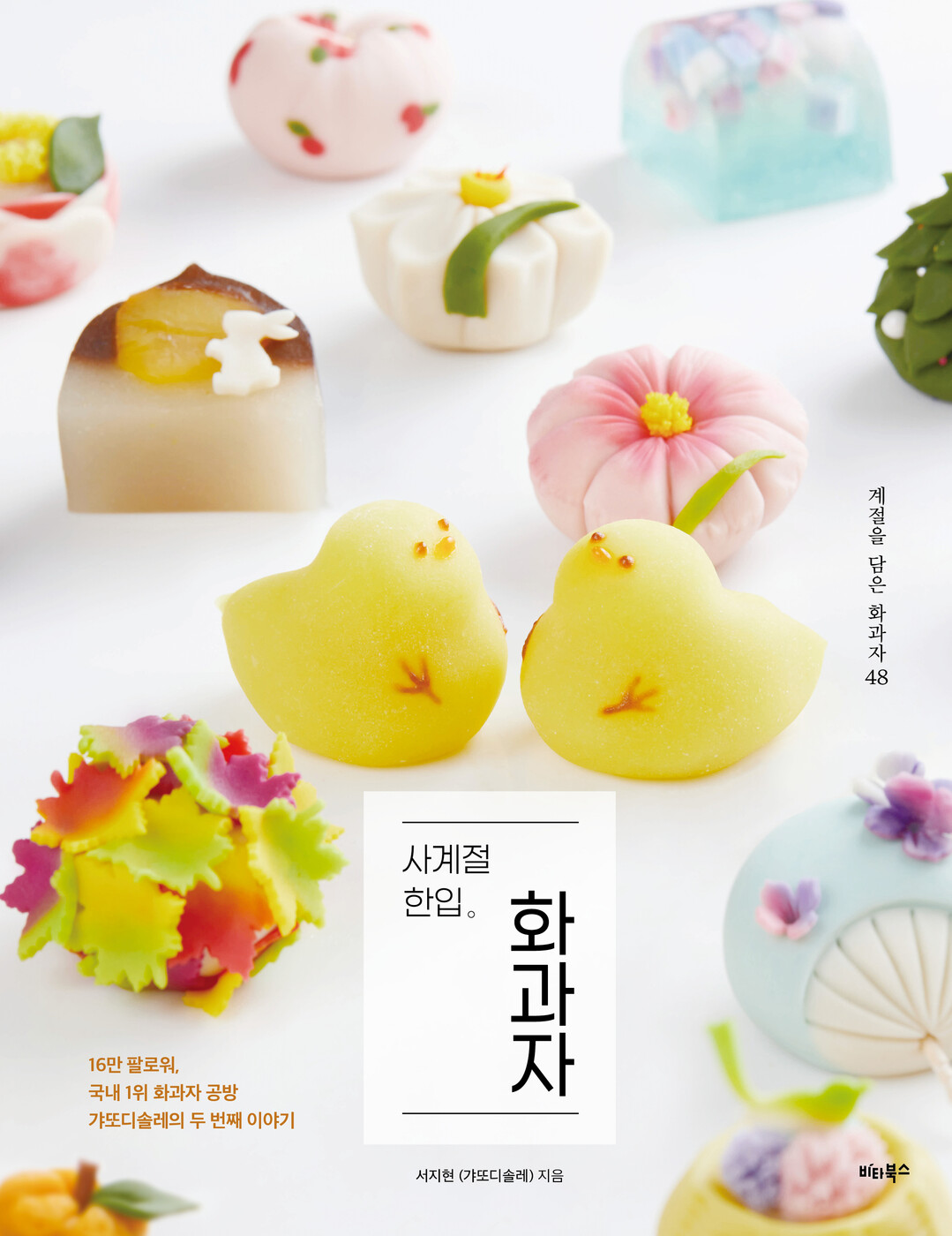 연희동의 화과자 공방 ‘갸또디솔레’의 두 번째 책, ‘사계절 한입 화과자’. 초보자도 손쉽게 시작할 수 있을 만큼 자세한 이론과 디테일한 과정 컷이 함께 담겨있다. 사계절이라는 주제로 감성적이고 창의적인 화과자 48개 의 레시피에는 고나시, 네리키리, 우이로 등 기본 반죽 화과자와 킨교쿠 (투명양갱), 양갱으로 만든 디자인이 12개씩 구성되어 있다. 또 반죽 보관법과 초보자들이 흔히 겪는 어려움 등에 어떻게 대처해야 하는지 자세히 다뤘다. 계절의 흐름을 화과자에 녹여낸 디자인 북으로, 디저트를 좋아하는 사람이라면 누구에게나 만족감을 선사할 것이다.