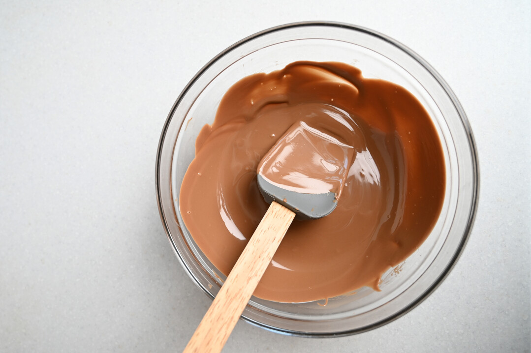 용해한 초콜릿을 15℃의 물에서 식혀주는 방법.