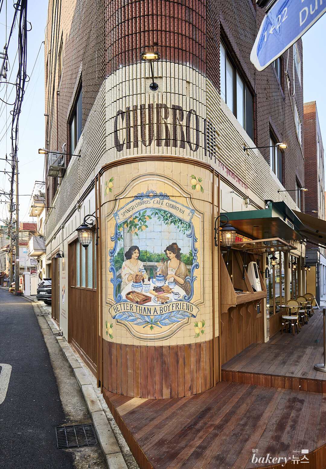 스페인 감성이 가득한 츄로101의 포인트 중 하나로 외관에 자리한 벽화(본 기사 첫 페 이지 사진 참고)를 빼놓을 수 없다. 두 명의 여자가 테이블에 앉아 함께 츄로스를 나눠 먹는 모습 아래에는 ‘BETTER THAN A BOYFRIEND(남자친구보다 낫다)’라는 문구 가 눈에 띈다. “기발한 슬로건이 하나 있었으면 했어요. 한창 연애 중인데 이것보다 더 좋다면 최고가 아닐까 하는 생각에서 만들게 되었습니다. 절대 실망시키 지 않는다는 자신감을 담았죠.” 이 문구가 적힌 벽화 앞에서 많은 이들이 사진을 찍었으면 한다는 최 대표의 마음을 읽기라고 한 것처럼 너도나도 츄로스를 들고 벽화에서 찍은 사진을 SNS에 올리며 자연스레 홍보에 동 참하는 중이다.