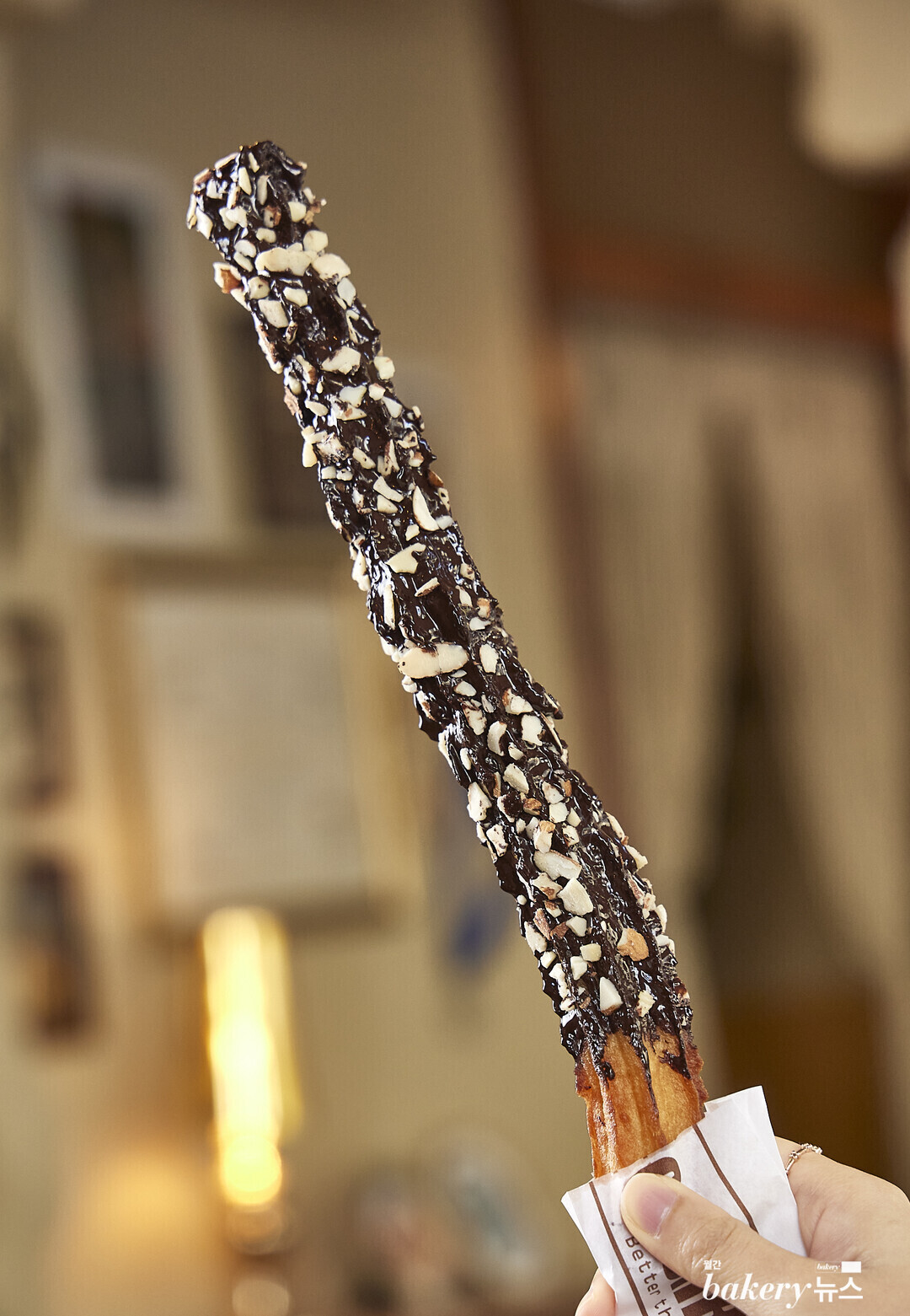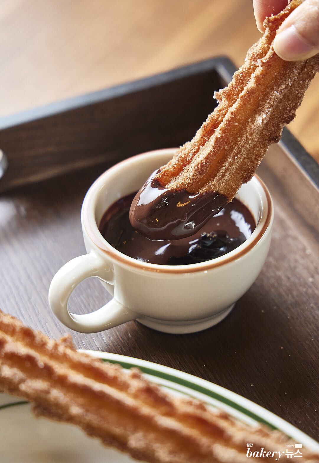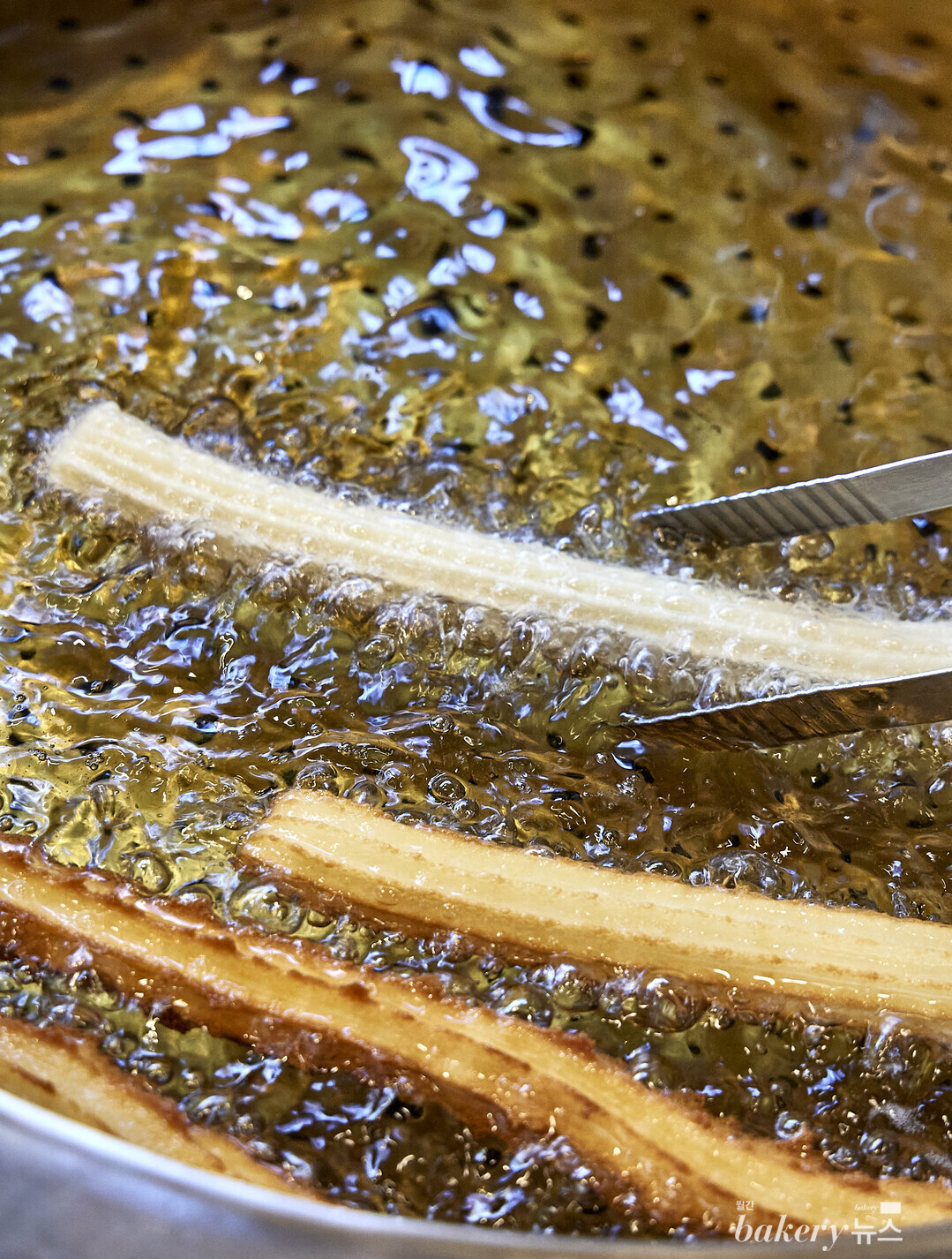 츄로스를 맛본 손님들 중 “제가 스페인에서 먹어본 츄로스는 이것보다 훨씬 폭신했어 요”, “스페인에서 먹었던 츄로스는 더 바삭했던 것 같은데”처럼 하나의 츄로스에도 다 양한 피드백이 들려온다. 김치가 지역마다 특징이 조금씩 다른 것처럼, 스페인에서도 지역마다 츄로스의 식감과 맛이 다르다고 한다. “저는 겉은 바삭하고 속은 촉촉한 츄로 스가 가장 좋더라고요. 그 식감을 살릴 수 있도록 재료를 배합했습니다.” 반죽에 각별 한 애정을 쏟는 만큼 츄로101은 소량의 반죽을 하루에 여러 번 만든다. 우스갯소리로 반죽을 매일 생산이 아닌 튀기기 직전 생산이라고 말하기도 한다. “반죽이 날씨와 습도 의 영향을 많이 받아요. 금세 질어질 때가 많아 한 번에 많이 만들어 둘 수가 없어요. 날 씨에 따라 반죽의 배합을 조금씩 다르게 합니다.” 또한 츄로스를 찍어 먹는 초콜릿 딥 소스, 필링에 들어가는 초콜릿 크림, 츄로스 겉에 입히는 초콜릿 레시피를 모두 다르게 만들었다. 이 또한 소량씩 자주 만든다. 딥 소스는 먹기 직전 끓여 먹는 것이 가장 맛있 다고 생각하는 최 대표 덕에 늘 가게 앞에서는 진한 초콜릿 향이 풍긴다.