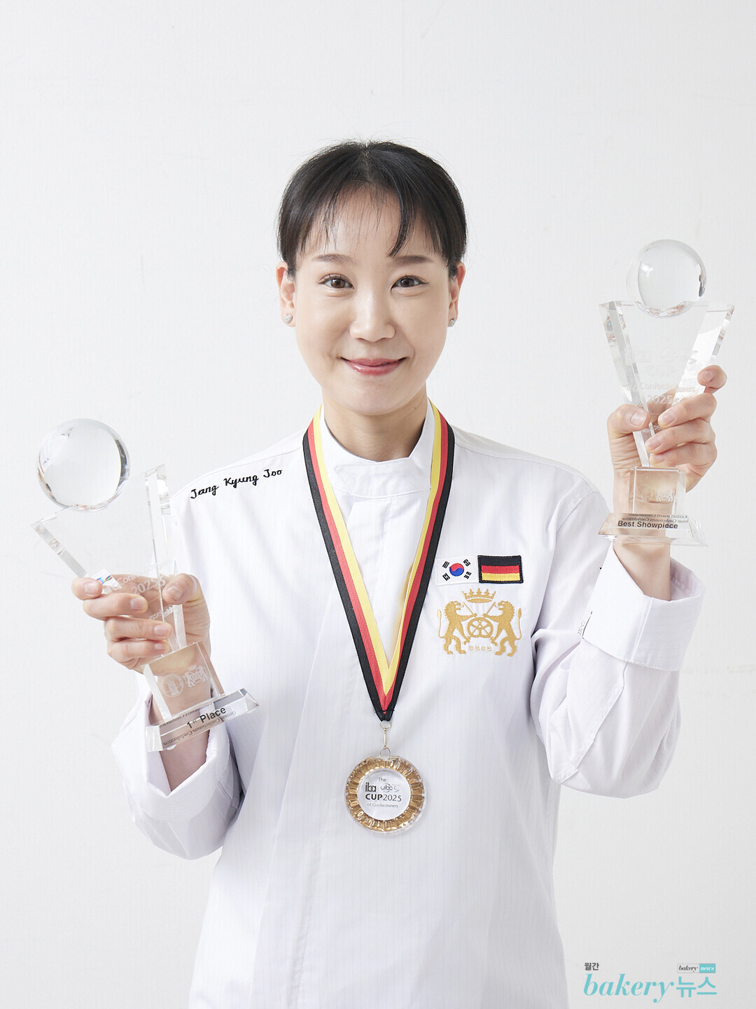 2년 전인 2023년 이바컵 제과 부문에서 금메달을 수상한 한국팀이 2025년 다시 한번 정상의 자리에 올랐다. 한국팀은 동 대회에서 2012년 금메달, 2015년 은메달, 2023년 금메달을 수상하며 경기에 참여할 때마다, 좋은 성적을 거두었던 전통 강자다. 그렇기에 이번 이바컵 2025에 선발된 장경주 선수, 김인석 선수에게도 많은 이목이 쏠렸던 상황, 경기장 내 여러 국가와 심사위원들의 많은 견제가 있었다는 후문이다. 하지만 두 선수는 최무경 단장의 코칭 아래 훈련량을 강하게 채우며 압도적인 실력과 단합력을 길러 왔기에, 경기장 내 갑작스러운 변수나 주변의 견제에도 흔들리지 않고 온 힘을 다해 경기에 임할 수 있었다고. 이후 경기 중반부터 최 단장은 한국팀을 에워싼 방문객들의 뜨거운 반응과 심사위원들의 표정을 통해 한국이 강력한 우승 후보로 자리 잡았음을 확신할 수 있었다고 밝혔다. 그리고 결과는 이견 없는 한국팀의 우승이었다. 한국팀은 유럽권 출신의 심사위원들이 맛있게 즐길 수 있는 맛의 밸런스를 충실히 담아내는 한편, 타 팀에 비해 압도적인 사이즈의 쇼피스를 정교하게 선보였다는 평을 받으며 베스트 쇼피스상까지 거머쥐는 저력을 발휘했다.