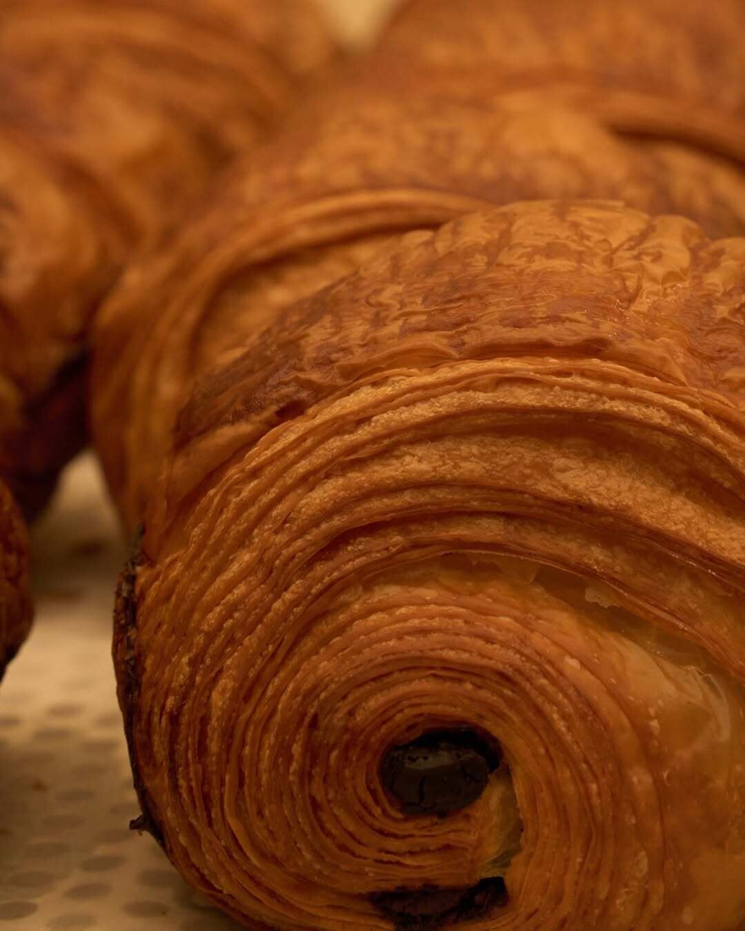 마치 생초콜릿 같은 질감의 진한 초코 가나슈가 크루아상에 듬뿍 채워져 있다. 반으로 가르면 등장하는 터질듯한 크림은 보기만 해도 당 충전되는 기분을 느낄 수 있다. 초코 반죽과 기본 반죽이 섞인 투톤 크루아상이라 페이스트리 자체 에서도 은은한 초콜릿의 향을 즐길 수 있으며, 카카오 함량 65%의 다크 초콜 릿을 사용해 기분 좋은 쌉싸름함도 살아 있다.