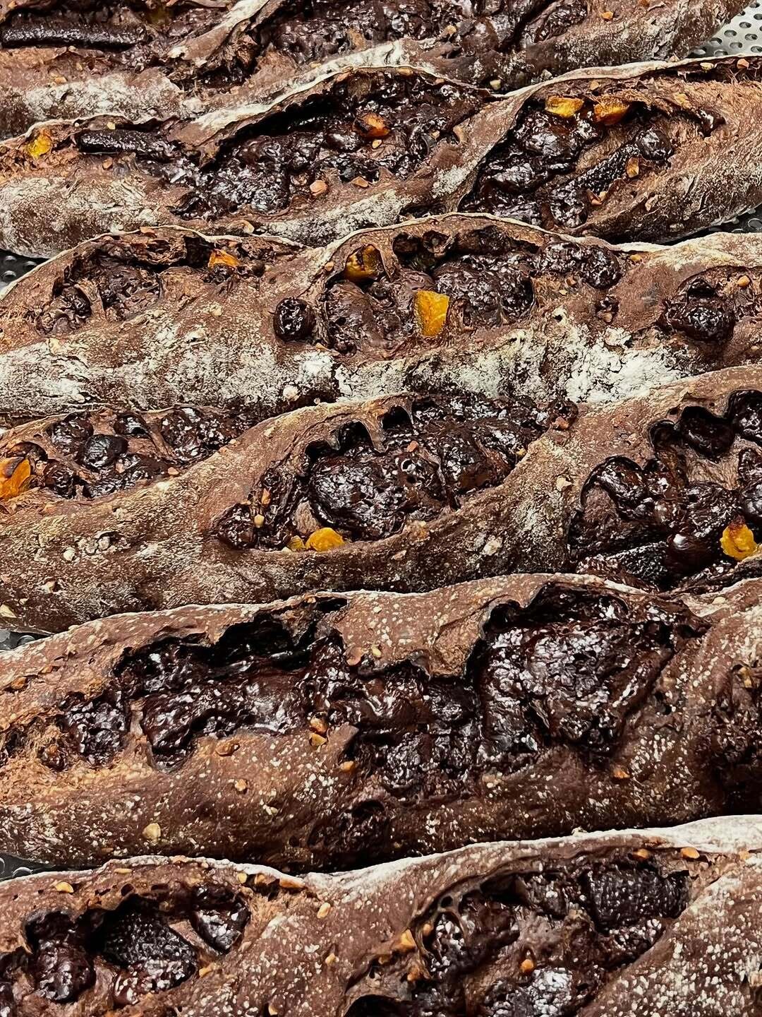 발로나와 칼리바우트의 다크 초콜릿을 사용해 진하고 묵직한 초코 바게트의 맛을 완성했다. 중간중간 구운 아몬드의 고소함이 초콜릿과 어우러지며, 살구 다이스는 새콤한 과일의 프루티함을 선사한다. 중간에 길게 들어있는 초코 스틱 덕분에 초콜릿 본연의 맛을 느끼기 좋다. 원하는 크기로 슬라이스 해서 크림치즈와 함께 곁들여 먹으면 색다르게 즐길 수 있다.