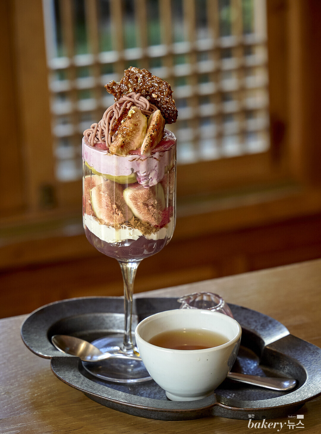 푸드떼를 떠올리면 자연스럽게 같이 떠오르는 메뉴가 있는데, 바로 파르페다. 한국에서 파르페 열풍이 불기 전부터 대표 디저트로 선보여 푸드떼의 또 다른 아이덴티티라고 할 수 있다. 극강의 비주얼과 맛으로 한때 국내 SNS를 뜨겁게 달궜고 지금은 국경을 넘어서 까지 많은 사랑을 받는 메뉴 라인이다. “매년 여름마다 ‘복숭아 크렘 브륄레 파르페’를 준비하는데 3년째 그 메뉴의 첫 번째 손님이 되 고 싶어서 출시 첫날에 가장 먼저 홍콩에서 오시는 손님이 계세요. 드시고 가시면서 ‘올 해도 제가 첫 번째 손님이죠?’하고 가시는데 너무 감사하더라고요.” 이 밖에도 그라데이션 양갱, 대복떡, 모나카, 구움과자 등 계절감을 담은 다양한 차과자를 만날 수 있다.