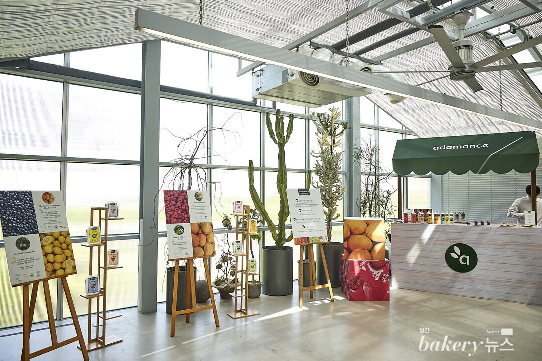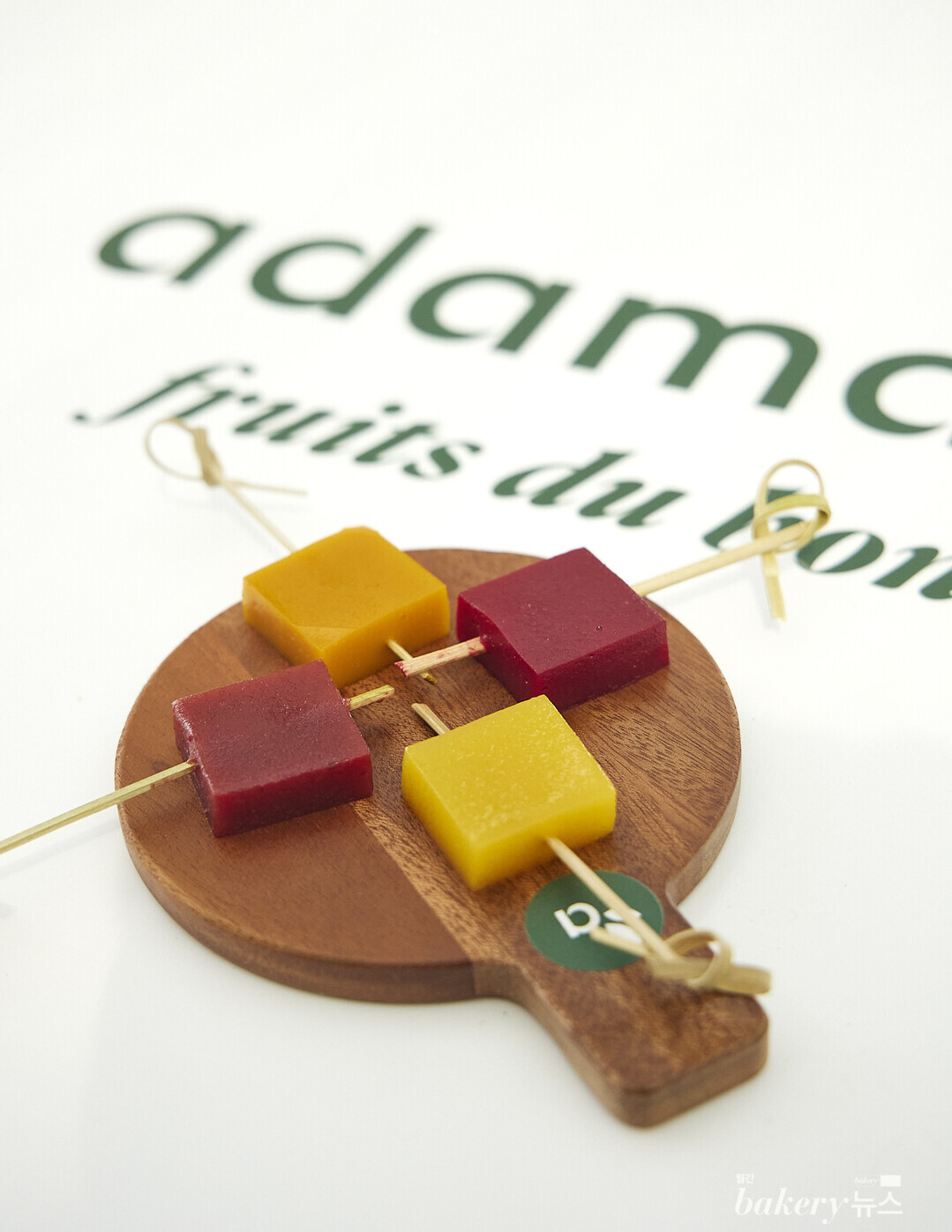 ㈜베이크플러스 R&D 김성원 팀장은 파트 드 프뤼와 2가지 구움과자를 준비했다. 김 팀장은 “파트 드 프뤼는 100% 퓌레를 사용했고 부드러운 텍스처를 잡기 위해 소사의 아가아가를 사용했다”고 전했다. 이어 “부드러운 식감을 원하면 수분을 조금 더 넣어 되기를 조절하면 되고 조금 되직한 질감을 원하면 구연산을 첨가하면 된다”고 제조 팁을 덧붙였다. 레몬 티그레와 산딸기 파운드 케이크는 해당 과일을 반죽, 시럽, 크림 등 여러 형태에 담아내 보다 더 강한 과일의 맛을 표현했다. 또한 아다망스 부스에서는 아다망스의 전 제품이 진열돼 있었고 자유롭게 시식이 가능했다.
