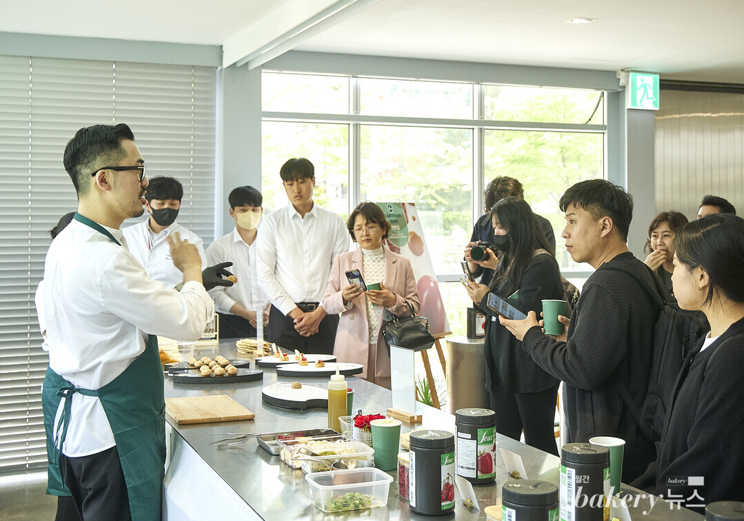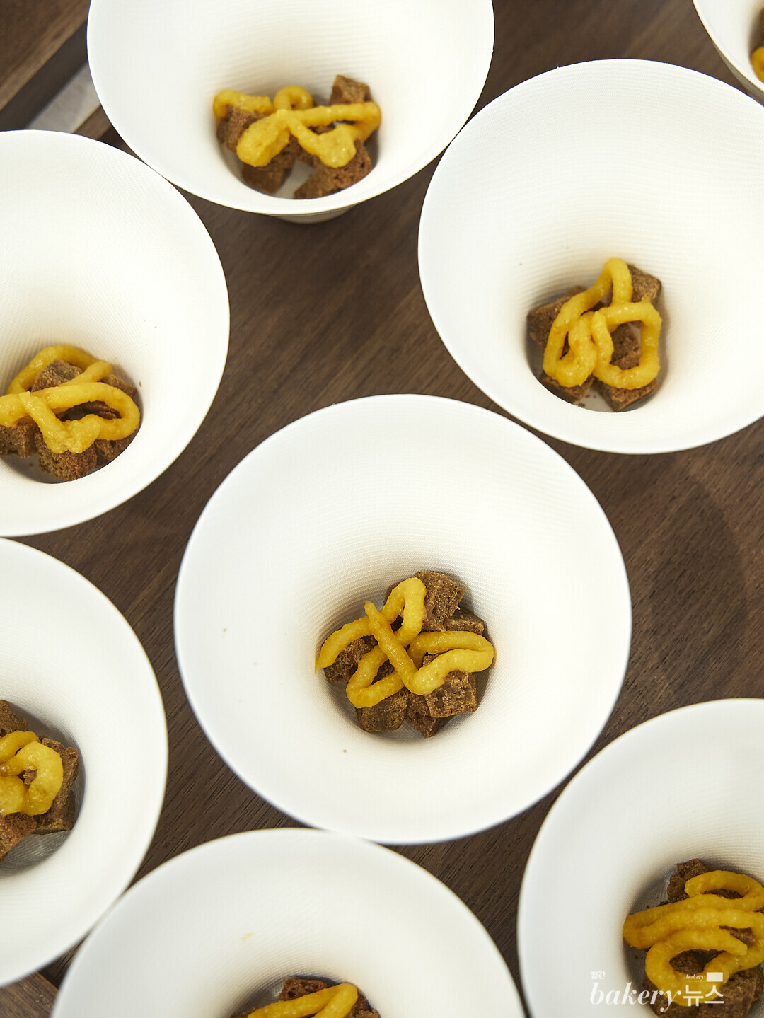 1967년 스페인 카탈루니아 지방에서 시작한 소사는 100% 천연 재료를 사용해 텍스처 라이저, 동결 건조 과일, 테크니컬 슈거 등 베이커리 특수 재료들을 선보이고 있다. 소사의 앰버서더인 ‘제이엘디저트바’ 저스틴 리 셰프가 이날 4가지 메뉴를 준비했다.