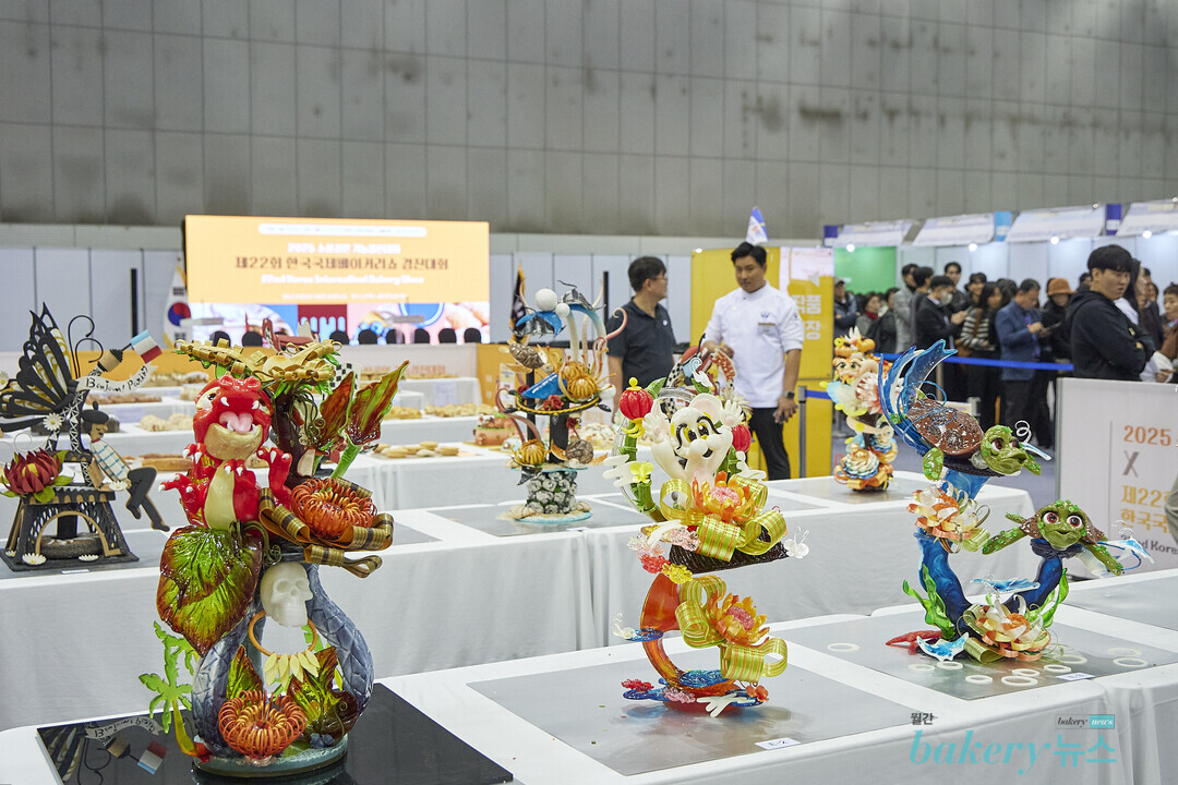 한편 소상공인경진대회에는 (사)대한제과협회에서 시행한 ‘제22회 한국국제베이커리쇼 경진대회’가 함께 개최되며 수많은 제과인들이 모였다. 이번 대회는 소상공인 부문과 일반인 부문으로 나눠 현장 출품으로 진행됐으며 제과·제빵 산업 내 우수 기능을 보유한 기술인과 소상공인을 발굴 및 육성하기 위해 개최됐다. 소상공인 부문은 제빵(가루쌀빵), 데커레이션 케이크(버터케이크), 공예(빵공예, 설탕공예) 3가지 품목으로 구성되었고, 일반인 부문은 주니어 케이크(마지팬케이크), 공예(슈거크래프트, 초콜릿공예) 2가지 품목으로 구성됐다. 선수들은 오전 9 시부터 10시 30분까지 준비해 온 작품을 본인의 진열대에 정성껏 진열했고, 이후 심사위원들은 색채, 예술성, 독창성, 완성도 등의 평가 항목을 바탕으로 선수들의 배합표를 확인하며 주어진 재료를 알맞게 사용했는지, 규정에 맞는 크기인지 꼼꼼하게 평가를 이어갔다.