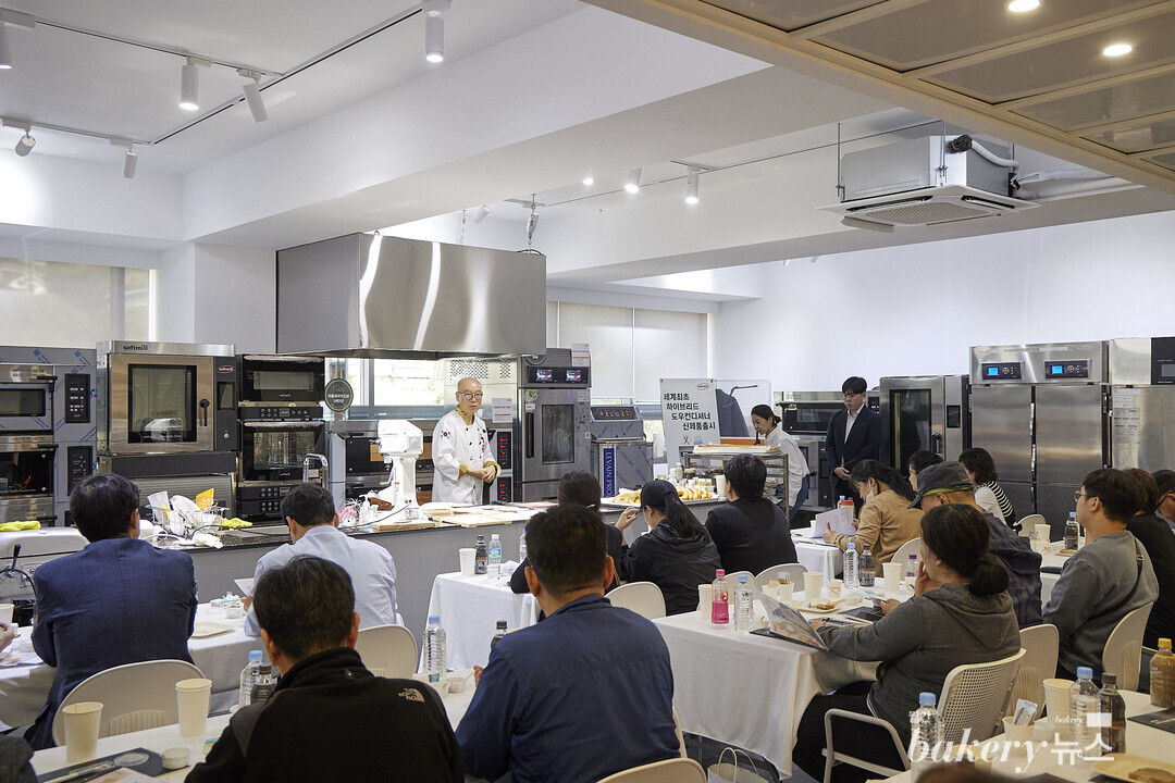 제과제빵 설비 브랜드 대흥소프트밀의 두 번째 세미나가 개최됐다. 세미나의 주제는 ‘맛있는 빵의 차원을 가르는 정통 르방 활용’으로 ㈜세전부설식품연구소의 권영복 기술이사가 실연을 맡았다. 세미나가 시작되고 권 이사는 고객 반응이 가장 좋았던 ‘수플레 소프트 롤’을 선보였 다. 르방이라는 주제에서 벗어나 활용도가 높은 제품군을 소개해 분위 기를 환기하고 참석자들의 이목을 끌었다. 이어 ‘르방 프로세서’, ‘하이 브리드 도우콘’, ‘미들 세라믹 오븐’ 등 대흥소프트밀의 장비 특성과 활용 노하우를 전달했다.