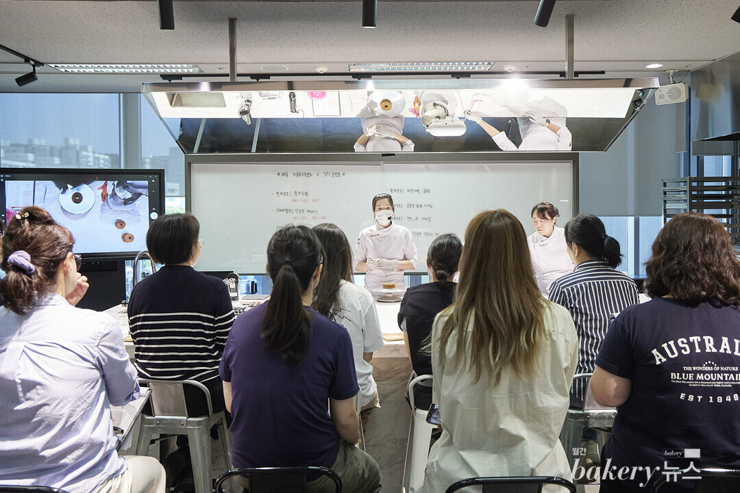 9월 26일 세미나에서는 박지은 강사가 두 번째 세션을 다루었다. 그는 시연에 앞서 팩에 담겨 있는 가당 노른자를 적당량 덜어내 참가자들에게 노른자의 쫀쫀하면서 점도 있는 텍스처를 확인할 수 있도록 안내했으며, 테스팅 과정에서 느낀 재료 보관의 편의성과 작업성에 대해 공유했다. 이어 교육에서는 노른자를 적용해 별립법으 로 시폰 시트를, 공립법으로 제누아즈 시트를 제작하는 과정에 초점을 맞췄고, 이후 아이싱과 데커레이션으로 작업을 마무리했다.