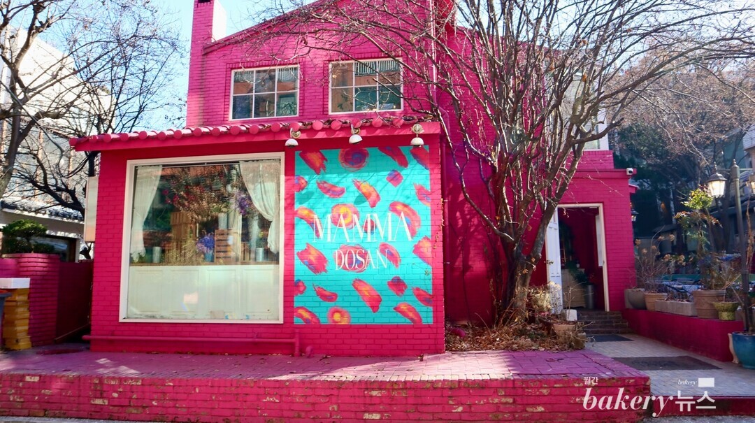 이름처럼 ‘도산공원’을 떠올리면 함께 생각나는 카페, ‘도산 맘마미아’. 2층 건물의 자주색 외벽, 청록 배경에 붉은 꽃들이 휘날리는 그림, 옆에 자리잡은 웅장한 나무 한 그루가 마치 신비로운 영화 속 한 장면 같다. 디저트를 진열해둔 곳은 클래식한 프랑스 빵집을 연상시킨다. 사진을 어느 곳에서 어떻게 찍어도 한 폭의 명화가 탄생한다. 2층 중앙의 커다 란 기둥에 분홍빛 장미와 붉은 장미 넝쿨이 감겨 있어 비밀의 화원에 놀 러 온 듯한 느낌이다. 또한 메뉴 라인업도 다양해 고르는 재미가 있다. 천연 벌꿀집이 들어간 그릭 요거트, 피낭시에, 컵케이크, 타르트, 샌드위치, 수프 등 취향껏 먹기 좋다. 날이 풀리면 테라스에 앉아 푸르게 핀 잎들과 무성한 나무, 만개한 꽃들을 보며 디저트에 커피 한 잔을 곁들여 보자. 도심 속 힐링이 완성된다.