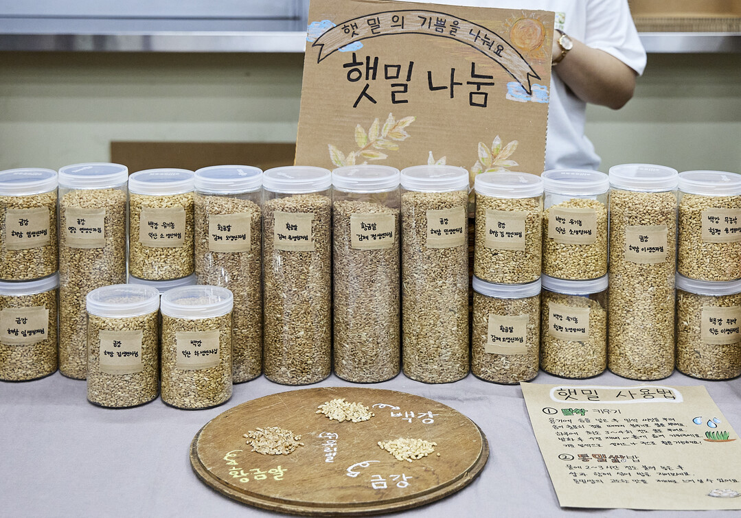 “햇밀을 맛보며 대지의 안부를 묻는다.”는 말이 있을 만큼, 밀은 그해의 날씨와 환경의 영향을 많이 받는다. 하지만 최근 이상 기후 현상이 심해지며, 밀 농가의 어려움이 커지고 있다. 이러한 어려운 상황에도 올해 오프라인 햇밀장에는 농가 6팀이 귀한 발걸음을 하여, 소비자와 함께 수확의 행복을 나눴다. 이들 중 올해로 햇밀장에 4번째 출점한 ‘이철규사과’의 이철규 농부는 이번 시장에서 3가지 품종의 밀을 소개했다. 이 농부는 “올해는 예년에 비해 비가 많이 와 재배가 쉽지 않았습니다. 하지만 우리밀을 소중히 아끼는 작업자, 소비자들을 직접 마주하며 행복을 느꼈던 햇밀장을 떠올리며 버틸 수 있었습니다. 햇밀장은 밀 농부들에게 농사를 짓는 이유와 보람을 일깨워주는 중요한 시장입니다.”라고 전했다.