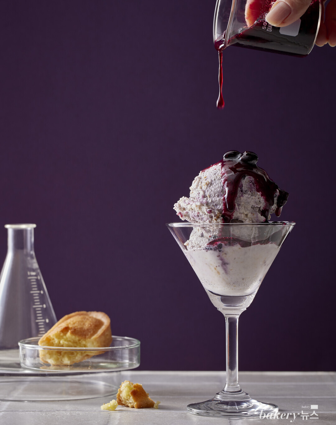 직장인의 짧은 점심시간, 식사 메뉴를 고르는 것만큼이나 식사 후 디저트를 고르는 일도 아주 신중하다. 이미 배는 불렀지만, 입안의 짠기를 지워줄 시원한 아이스크림도 좋고, 혹은 조금 욕심내 보드라운 디저트도 맛보고 싶다. 그럴 때 부담스럽지 않게 두 가지를 모두 충족시켜줄 히든 디저트, ‘블루베리 파이 젤라또’를 추천한다. 젤라또 한 스푼에 블루 베리 파이를 온전히 전달하기 위해 초미, 중미, 후미 통틀어 맛과 향, 질감까지 주안점이 많다. 먼저 메이플 시럽과 시나몬 파우더를 첨가해 젤라또 베이스를 만든다. 아이스크림 머신이 젤라또를 섞으며 칠링 하는 동안, 블루베리와 설탕을 은근한 불에서 조려 콩포트를 만들고 완전히 식힌다. 젤라또가 적당히 얼었을 때 식은 콩포트와 적당히 부순 크럼블을 넣고 마블 형태를 띨 정도까지 섞으면 완성된다.