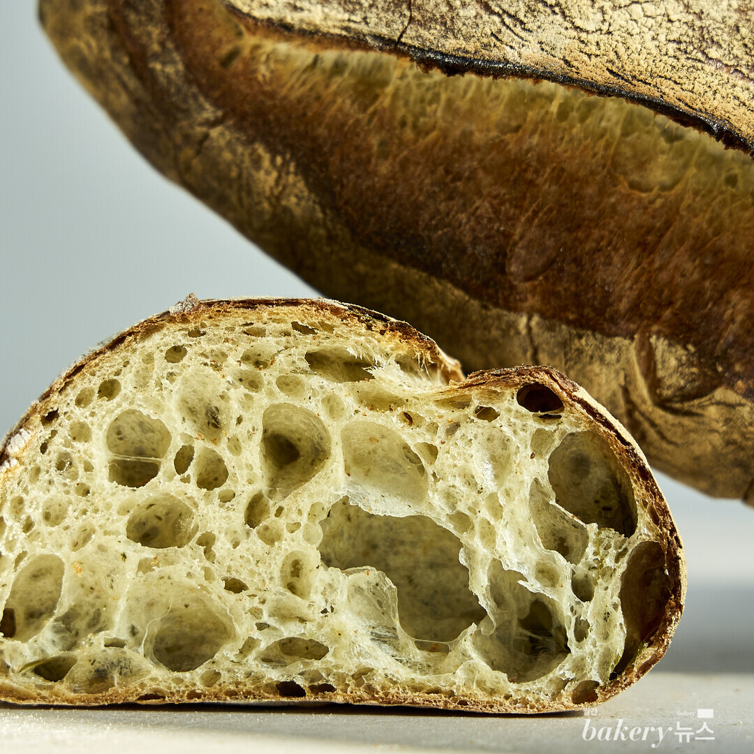 “서진농장의 깻잎은 너무 싱싱하고 향이 좋아 어떤 빵을 만들면 좋을지 오래 고민했습니다. 단순히 깻잎만 넣어서는 신선한 깻잎의 맛과 향을 그대로 전하기 어려울 것 같아 고민 끝에 깻잎 페스토를 만들어 사용했죠. 늘 한식 재료라고 생각해 왔던 깻잎이 올리브 오일을 만나니 색다른 맛과 향으로 다가와 많이 놀랐어요. 깻잎 페스토를 하드 계열 빵인 루스틱에 접목해 보니 그 매력을 더욱 제대로 느낄 수 있었습니다. 묵직한 루스틱의 깊은 구수함과 깻잎 페스토가 어우러져 만드는 조화로움을 즐겨보세요. 어디에서도 흔히 만날 수 없는, 특별한 깻잎 루스틱을 소개합니다.”