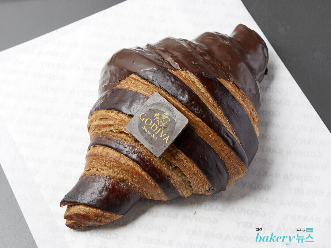 AOP 버터로 만든 바삭한 투톤 크루아상에 초콜릿을 코팅했다. 고디바 베이커리만의 색이 짙게 묻어나는 초콜릿 크루아상이다.