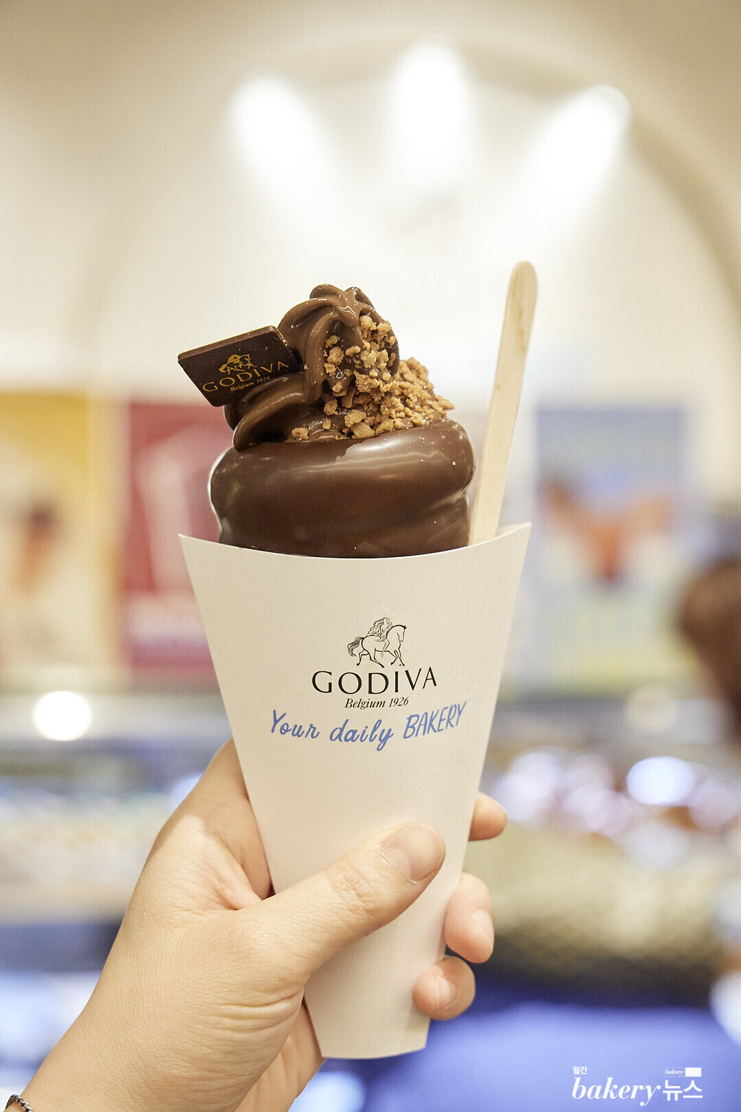 고디바 베이커리에서 가장 눈에 띄는 제품은 소라빵이다. 소라빵에 초콜릿을 다양하게 담아내고자 한 아이디어가 엿보인다. 소라빵 속에는 고디바의 초콜릿 크림이 충전되어 있고 초콜릿으로 한 번 더 빵을 코팅해 눈이 즐거운 완벽한 초콜릿 빵을 완성했다. 소시지 소라빵, 쪽파 크림치즈 소라빵 같이 세이버리 제품에도 초콜릿이 매칭되어 색다른 맛을 느낄 수 있다.