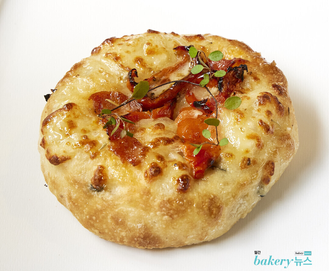 비가 반죽으로 만든 포카치아에 다양한 토핑을 올린 조리빵이다. 허브와 선드라이드 토마토, 치즈를 듬뿍 얹어 맛있을 수밖에 없는 조합을 완성했다.