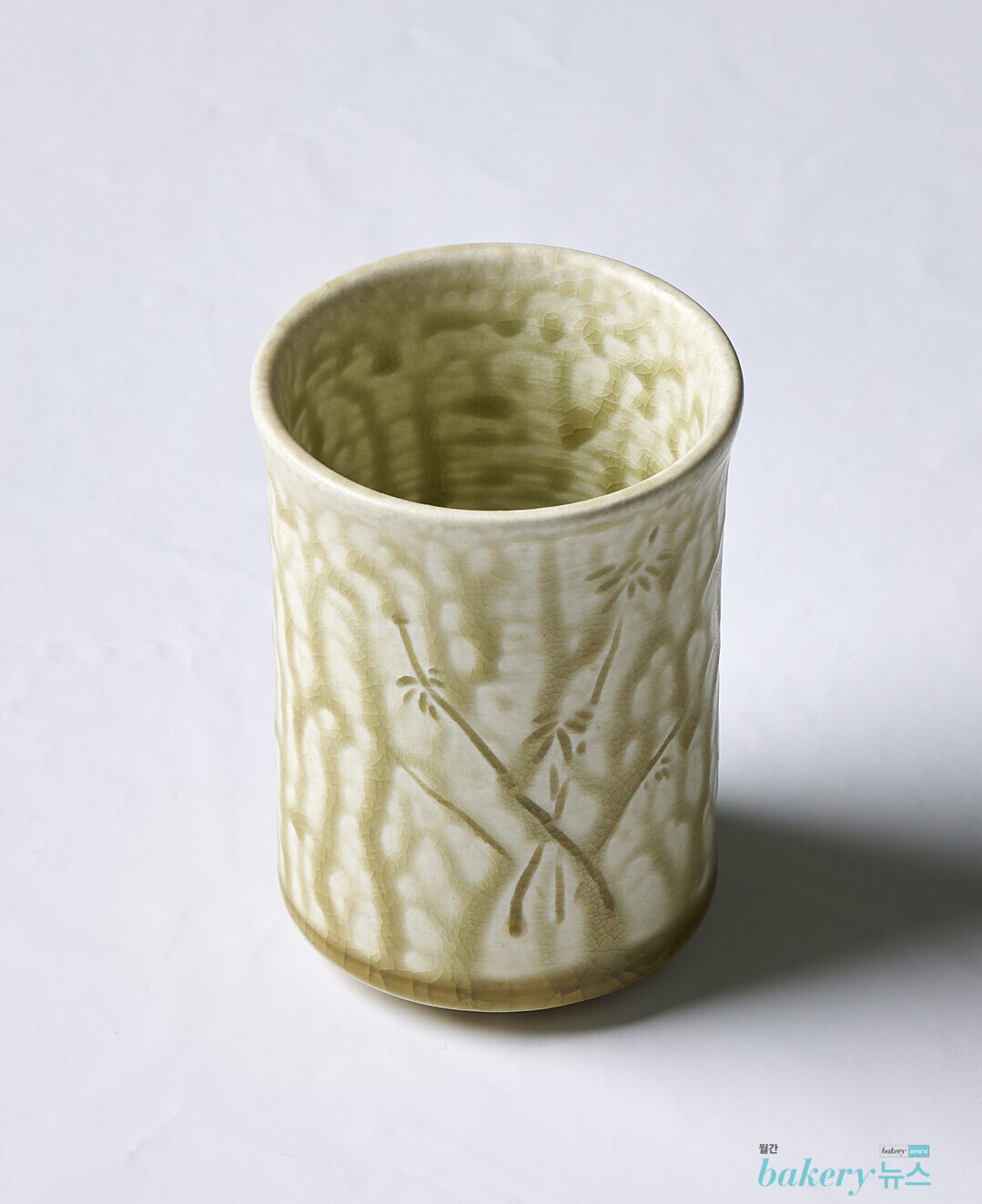 흐르는 유동성이 돋보이는 유약을 이용한 컵이다. 지름 6.5cm×높이 9cm의 작은 컵으로, 표면에 새긴 작은 대나무 그림이 포인트다.