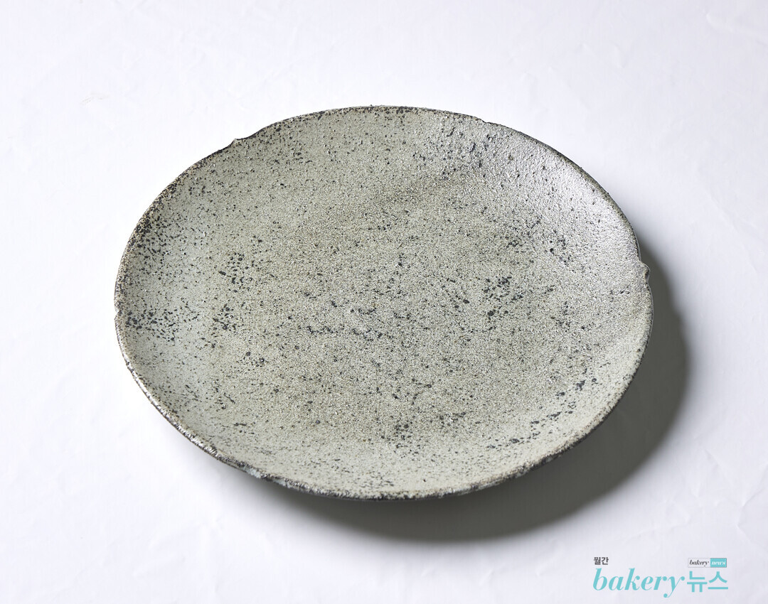 지름 25cm×높이 3cm의 넉넉한 크기로 쇼트 케이크나 조각 치즈케이크 하나를 올려도 멋스럽다. 특유의 돌 텍스처가 디저트를 더욱 돋보이게 한다.