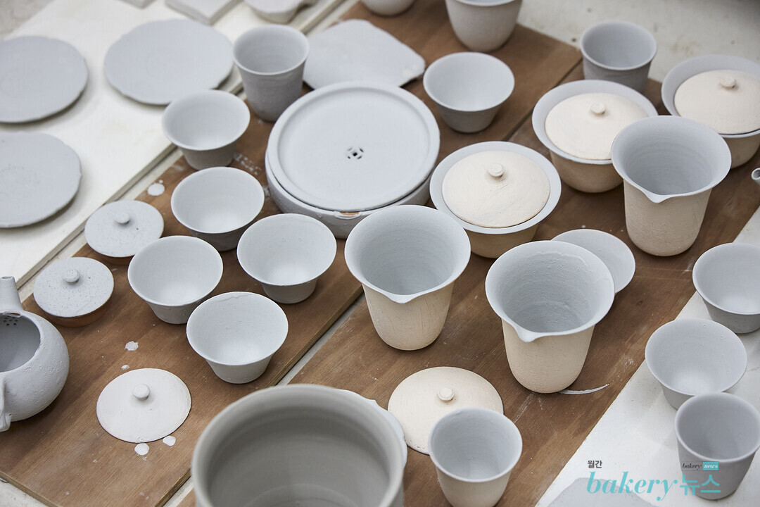 어떤 흙과 만나는지, 어떤 온도에서 구워지는지에 따라서도 유약이 다르게 표현되기에 유약을 개발하는 과정은 예상치 못한 우연에서 탄생하기도 한다. 물론 이를 위해서 기나긴 인고의 시간을 거쳐야 하지만, 이 과정이 즐겁다는 김희연 작가. 열에 아홉은 실망하기도 하지만, 5년 차가 된지금, 벌써 10가지가 넘는 라인들이 김 작가의 성실함을 방증한다.