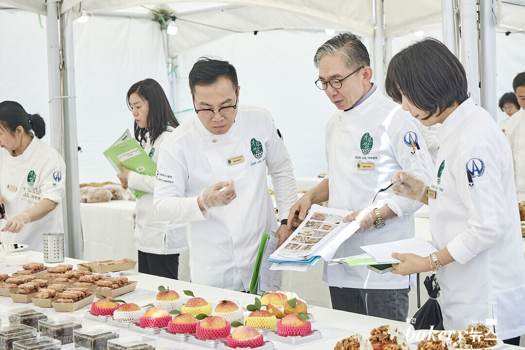 본격적인 대회가 시작되고 선수들은 미리 준비해 온 제품들을 조심스레 전시하기 시작했다. 이어 맛 평가를 위한 시식용 제품도 먹기 좋은 크기로 소분했다. 이번 품평회의 평가위원단은 15명으로 총괄평가위원장 1명과 분야별 7명의 전문가로 구성했다. 그들은 맛, 시장성, 독창성, 규격(가루쌀 배합 비율 10% 이상, 가루쌀 비율이 높을수록 고득점) 등 심사 기준을 통해 우수 메뉴를 선정했다. 대한민국 제과 명장인 인재홍 총괄 평가위원장은 “쌀의 특성상 부슬부슬한 식감의 제품이 나올 수밖에 없다”며 “이 점을 기술적으로 얼마나 보완했는지, 더불어 맛에서는 쌀을 얼마나 매력적으로 또 독창적으로 담았는지 눈여겨 봤다”고 말했다.