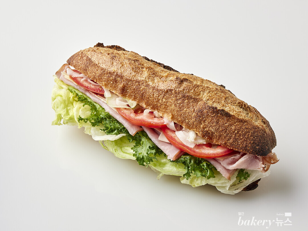 “매장 내에서 손님들이 가장 많이 찾아 주시는 메뉴입니다. 바게트 특유의 바삭한 식감과 구수한 풍미가 아주 매력적인 제품이죠. 우리 밀을 함께 넣어 반죽하고 저온 숙성하는 것이 저희만의 비법입니다. 여기에 실패 없는 조합인 신선한 채소들과 토마토, 델리 햄, 머스터드 소스가 더해져 환상의 하모니를 만들어냅니다. 심플하지만 입안 가득 꽉 차는 감칠맛을 느껴보세요.”