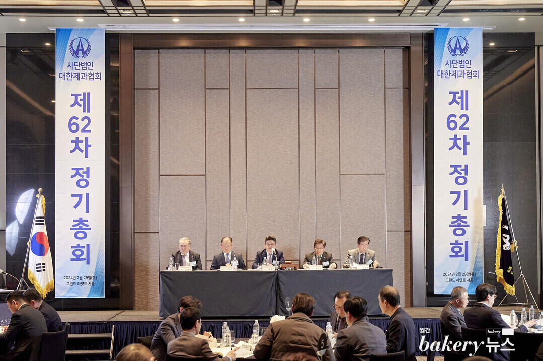 (사)대한제과협회가 지난 2월 29일 서울 용산에 위치한 그랜드 하얏트 서울에서 제62차 정기총회를 열었다. 정기총회는 1부와 2부로 나뉘어 열렸으며 (사)대한제과협회 마옥천 회장과 우원석 수석부회장을 비롯한 회장단과 전국에서 모인 대의원, 내빈 등 200여 명이 자리했다.
