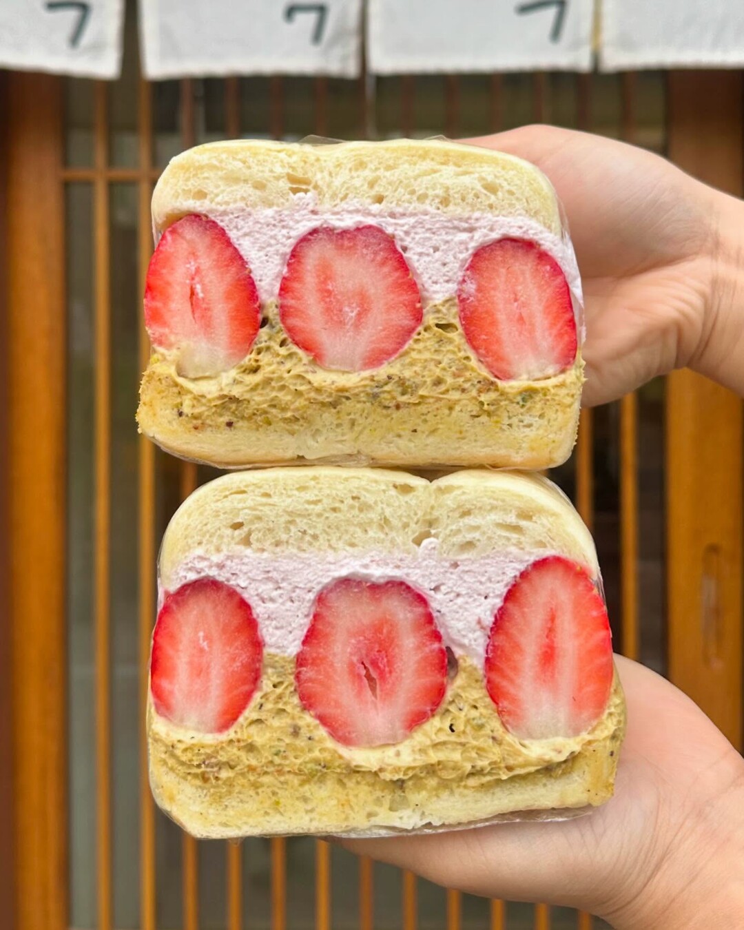쫀득한 베이글 사이로 피스타치오 크림, 딸기 크림, 그리고 통 딸기가 우뚝 자리하고 있다. 반으로 가르면 등장하는 압도적인 크기의 딸기는 비주얼적으로 나, 맛으로나 베이글의 중심을 잡는다. 이와 함께 중간중간 씹히는 피스타치오는 진한 고소함을 남긴다. 든든한 한 끼 식사로도 충분하며, 따뜻한 커피와 달콤한 디저트로 즐기기에도 좋다.