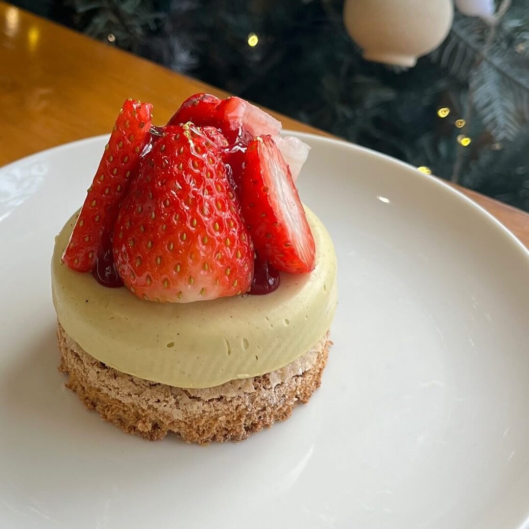 입안에서 딸기 과육이 피스타치오 무슬린 크림과 함께 부드럽게 녹아내린다. 일반적으로 딸기를 크림 안에 샌드하는 형태지만, 딸기를 위에 얹어 완성했다. 라즈베리와 딸기로 만든 콩포트가 중간에서 상큼함을 부여하며, 가벼운 질감으로 마무리한 크림은 차가울 때 최고의 맛을 낸다. 피스타치오 다쿠아즈의 고소함까지 다채로운 맛을 한꺼번에 느낄 수 있다.