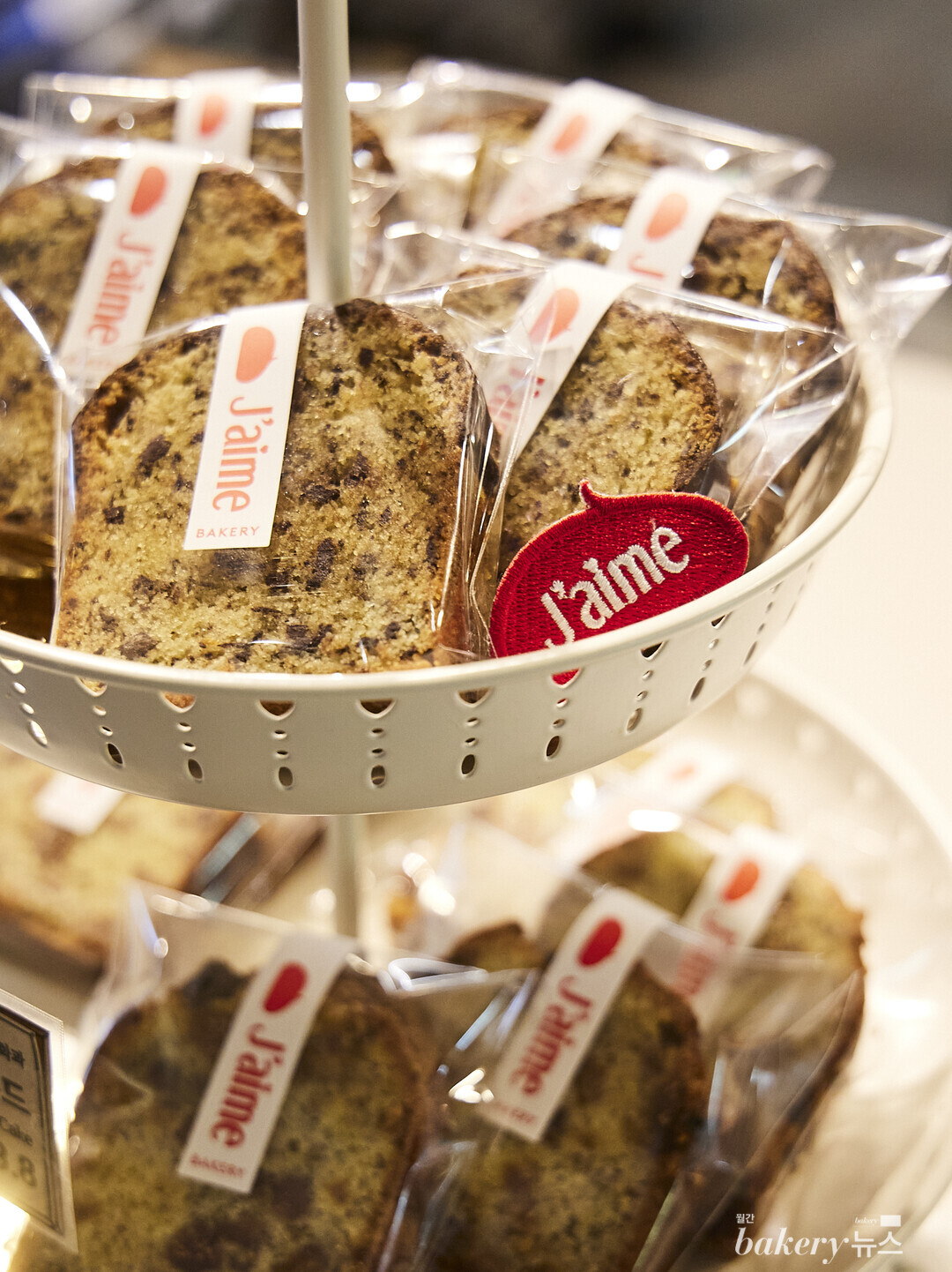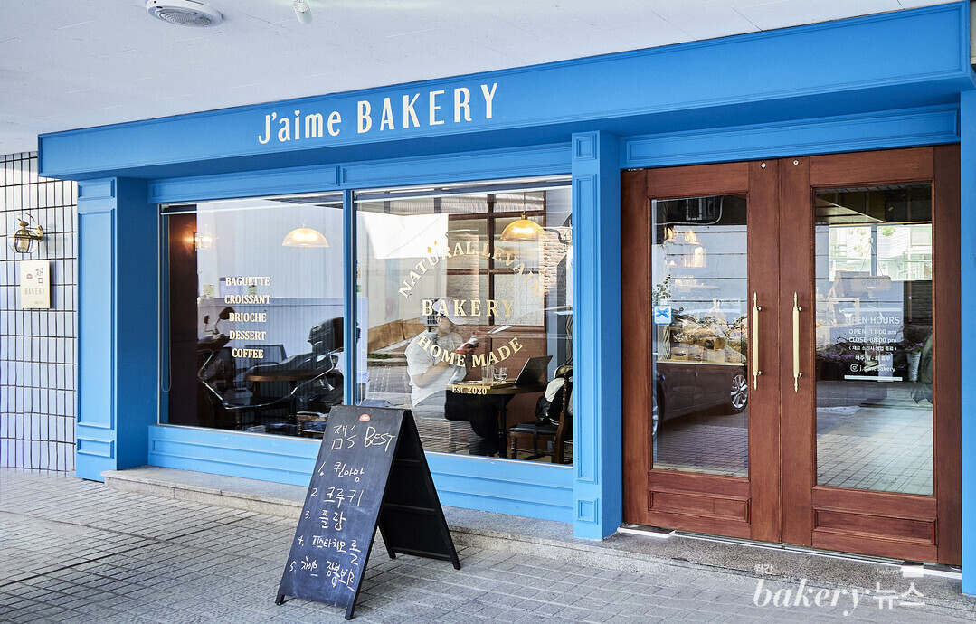‘내가 사랑하는’이라는 뜻의 불어 ‘J’aime’. 빵과 디저트를 사랑하는 마음 을 그대로 담은 ‘잼 베이커리’가 대흥동에 새롭게 등장했다. 이곳은 서촌에 위치했던 ‘베이커스 퍼센트’의 이진서 셰프가 11개월 간의 휴식 끝에 오픈 한 곳으로, 한층 더 풍부해진 라인업으로 돌아왔다. 서촌에서는 공간 제약 으로 만들지 못했던 메뉴들이 있었다면 잼 베이커리에서는 다르다. 보다 나 아진 작업 환경 속에서 그간 만들고 싶었던 메뉴들을 다양하게 선보이고 있 다. 매장 인테리어는 유럽의 불랑주리나 파티스리에서 많이 봤을 법한 분위 기로 연출했다. 메인 컬러는 푸른 타일로 구성된 건물 외벽과 어울리도록, 데님 블루로 잡았다. 여기에 포인트가 되는 빨간색 캄파뉴 모양 로고는 매 장 분위기를 한층 더 발랄하게 만든다.