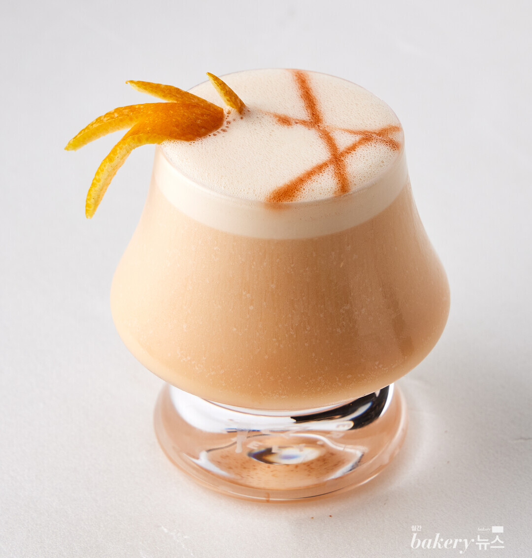3 ②를 준비한 잔에 담은 후 장식용 오렌지 필을 올려 마무리한다