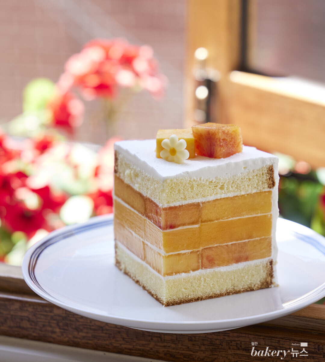 달콤한 과즙이 뚝뚝 떨어지는 복숭아와 애플망고를 사용한 케이크다. 빵보다 과일이 더 많이 들어가는 케이크로 입안 가득 과일의 달콤함을 제대로 느낄 수 있다.