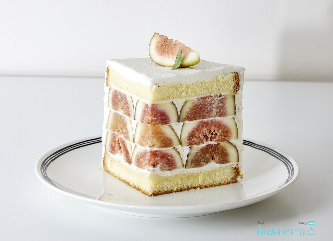 케이크 시트 사이 칼각으로 샌드되어 있는 무화과가 압도적이다. 부드러운 케이크의 식감 또한 놓칠 수 없는 포인트다.