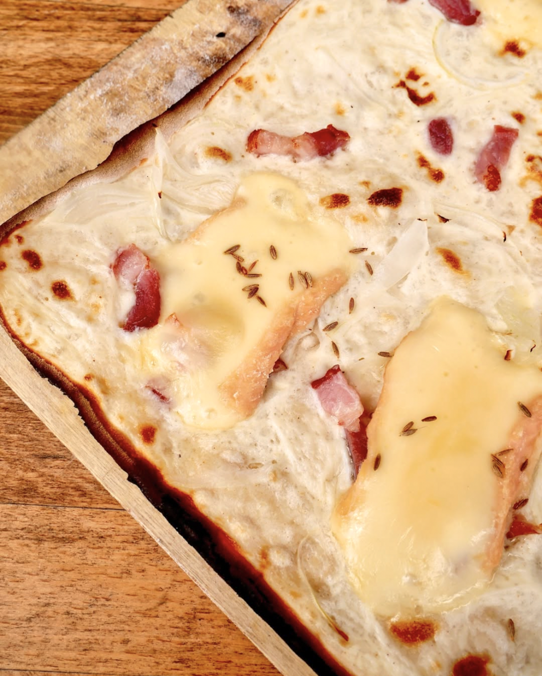 특히 초록색 유리 스템의 알자스식 와인잔, 빵빵한 알자스 와인 리스트가 준비되어 있어 오전인데도 화이트 와인 한 잔이 생각났다. 또 메뉴판 속 알자스식 피자인 ‘타르트 플랑베(Tarte Flambée)’를 보니 저녁에도 꼭 다시 방문해야겠다는 생각이 들었다.