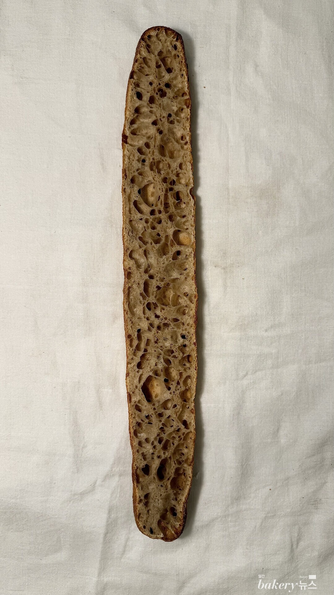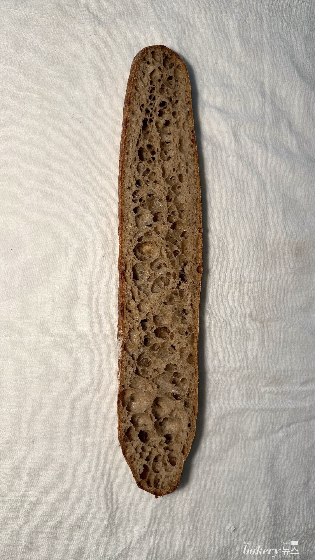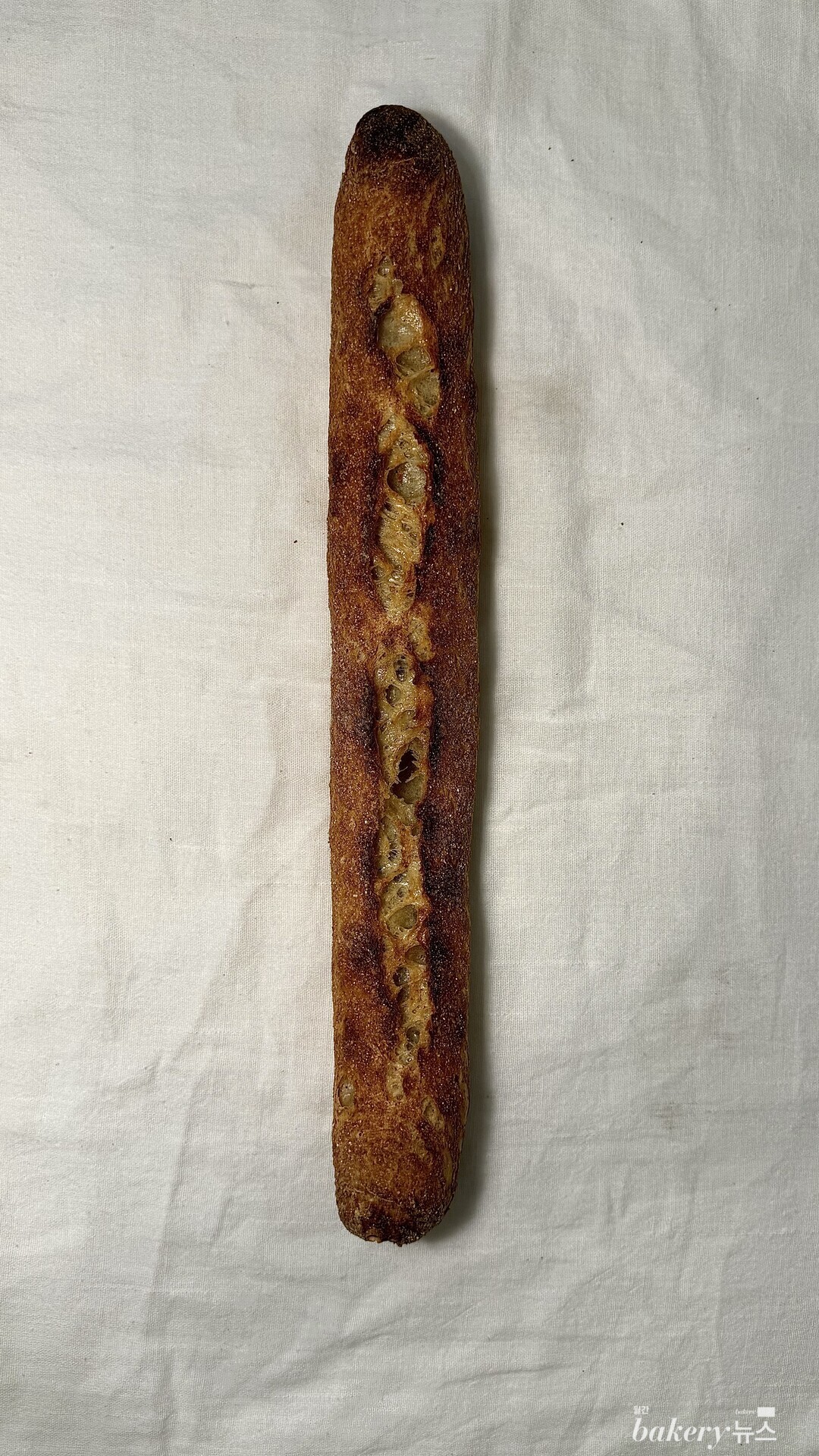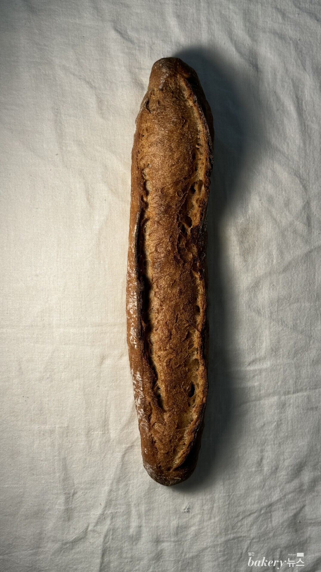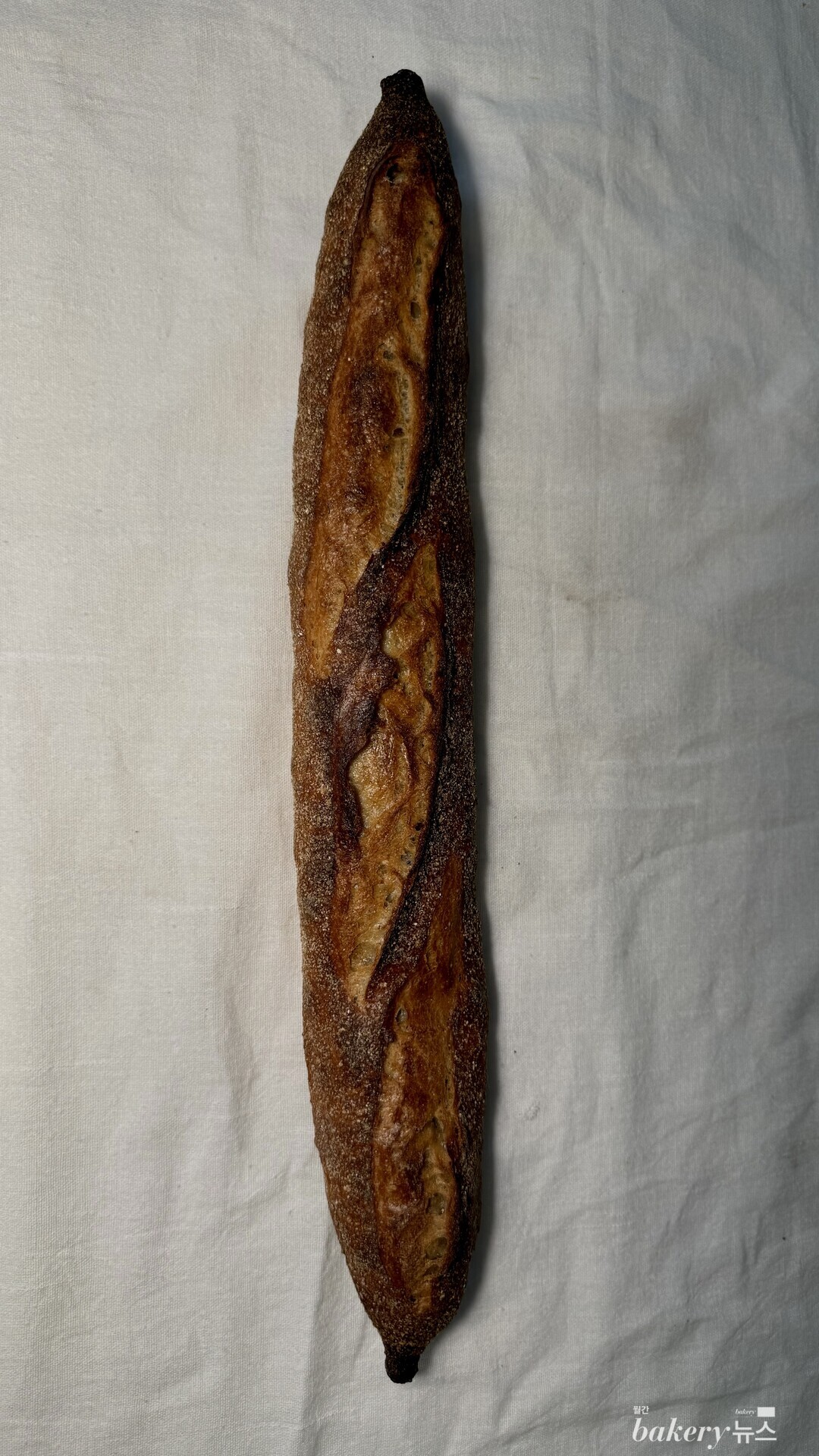 크리미한 단맛과 흑설탕 고유의 향, 초코 같은 단맛이 씹을 수록 올라온다. 속은 수분이 가득 들어 있어 밀 본연의 맛을 잘 느낄 수 있다. 키타노카오리 전립분만 100% 사용해서 만든 바게트다.