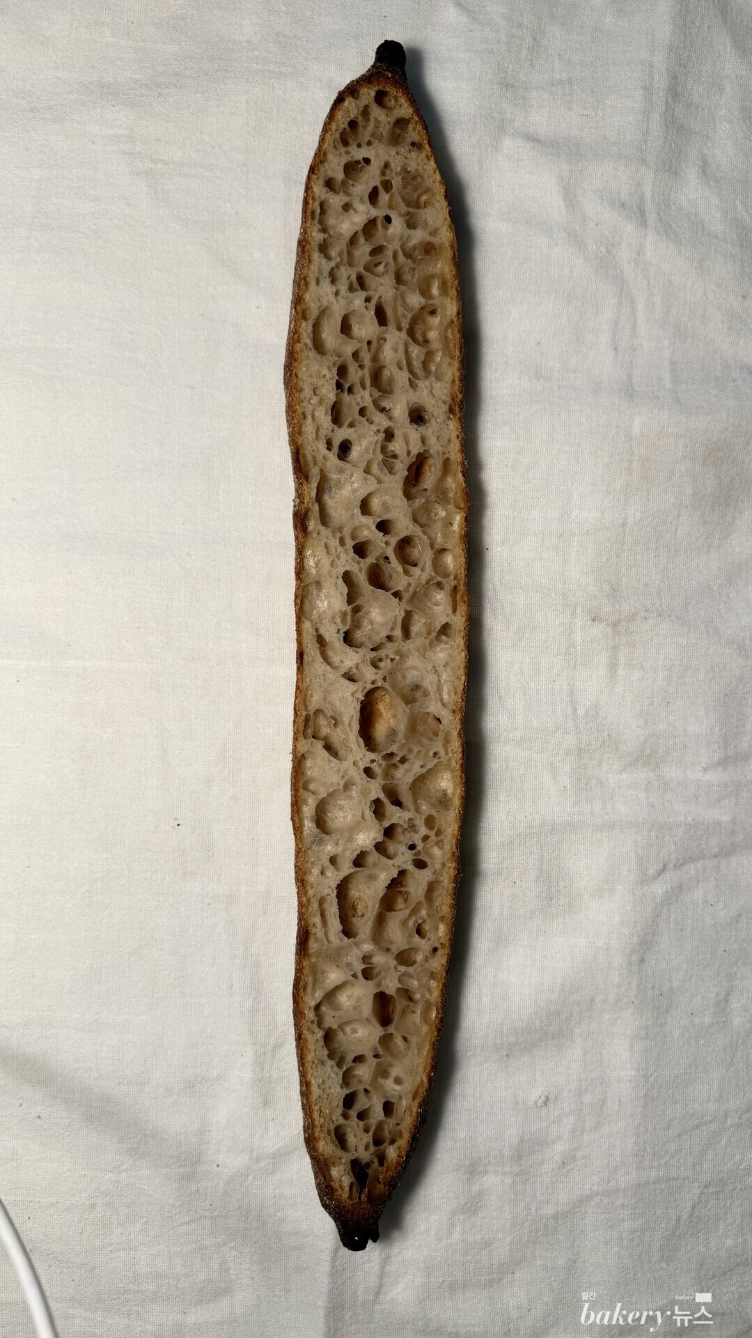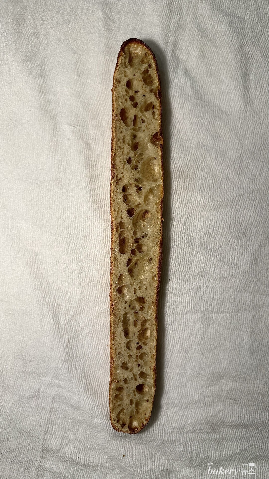 빵 껍질이 얇고 바삭해 누룽지 같은 고소한 향이 풍부하게 퍼진다. 속은 보드랍고 몽실몽실한 바게트로 두 가지 식감을 동시에 즐길 수 있다. 니시노카오리는 단백질의 함유량이 많고, 밀가루 본래의 향과 단맛이 풍부하다.
