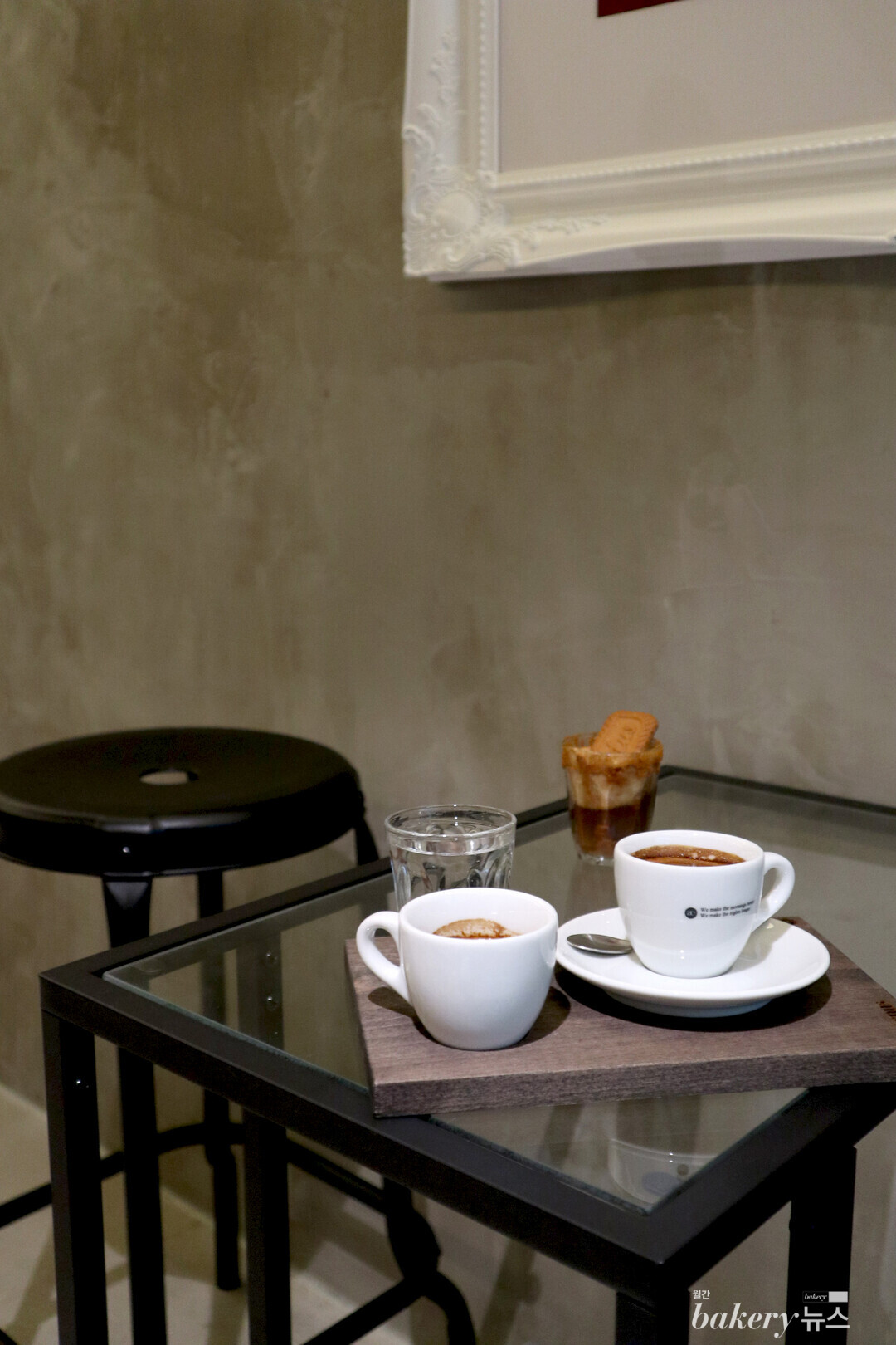 세련되고 모던한 블랙 무드를 좋아한다면 꼭 방문 해야 할 에스프레소 바다. 낮에는 카페, 밤에는 바로 두 가지의 모습을 만날 수 있는 공간이다. 에테르누스의 에스프레소 세트는 향긋하고 달콤한 시그니처 에스프레소 베리에이션과 일반 에스프레소, 탄산수가 곁들여 나온다. 서로 다른 에스프레소를 즐기는 중간에 탄산수로 입안을 깔끔하게 만들면 보다 더 확실한 플레 이버를 맛 볼 수 있다. 혹, 로투스 콘파냐를 마실 예정이라면, 뜨거운 에스프레소에 담긴 로투스가 솜사탕 처럼 순식간에 녹아버리니 이 점은 유의하자.