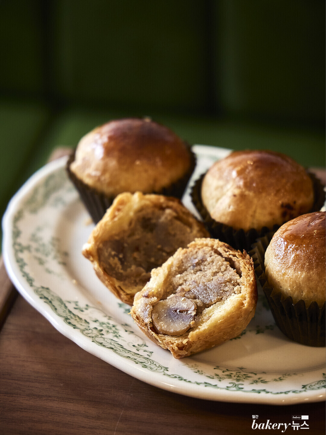 아소토 베이커리의 시그니처 메뉴로 바삭한 페이스트리 안에 달콤한 공주산 통밤 한 알이 통째로 들어 있다. 그 주위에는 부드럽고 진한 밤크림이 가득하다. 너무 달지 않아 어르신들 선물용으로도 제격이다.