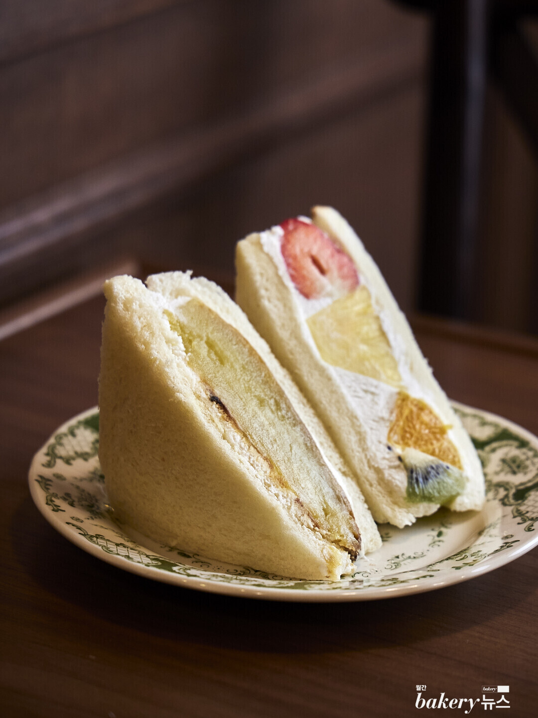 매일 새벽에 직접 만드는 쫀득한 식감의 식빵과 달달한 100% 동물성 생크림의 환상적인 밸런스를 느낄 수 있다. 후르츠 산도는 여기에 신선한 생과일을 듬뿍 넣어 완성했다. 달콤한 해남 꿀고구마가 들어있는 고구마 산도 또한 별미다.