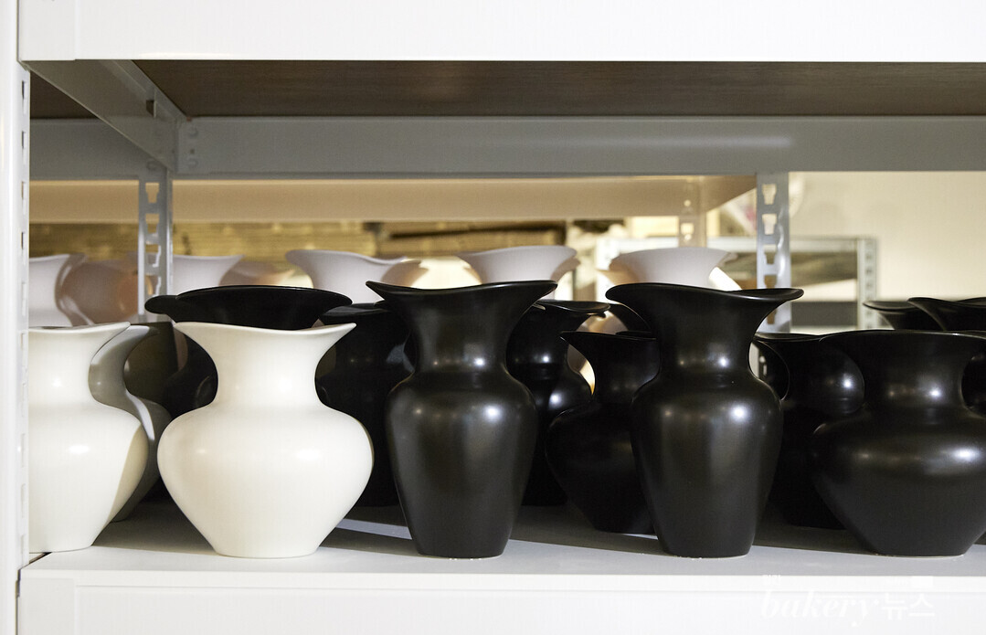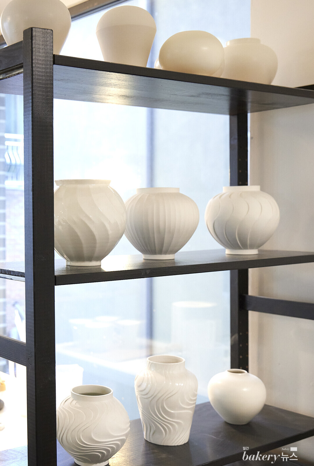 헤민 세라믹스에는 비정형 곡선이 살아 있는 시그니처 라인과 심플한 매력의 캐주얼 라인이 있다. 시그니처 라인은 캐스팅 작업을 한 후 일일이 손으로 만져서 곡선을 만들기에 시간이 오래 걸리지만, 그래서 더 수공예품의 멋을 느낄 수 있다. 캐주얼 라인은 셀렉한 초벌기에 헤민 세라믹스의 유약을 입혀 재벌하는 것으로, 가성비가 좋아 레스토랑에서 대량 구매하는 경우도 종종 있다. 이러한 매력을 알아본 ‘블랙로드 커피 성수’에서 작년 9월부터 매달 커피와 어울리는 디자인의 잔을 주문해서 사용한다고 하니 카페에서도 헤민 세라믹스의 도자기를 만날 수 있다.