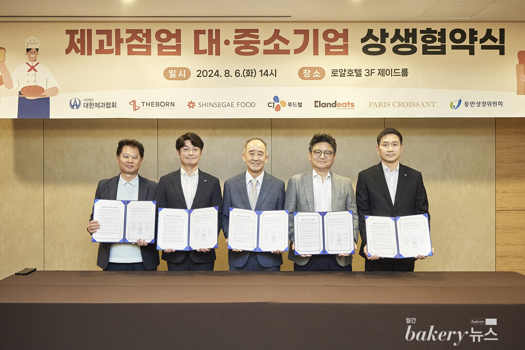 자본력이 우세한 대기업 프랜차이즈 베이커리로부터 동네 상권을 보호하는 ‘제과점업 대·중소기업 상생협약’이 수십 차례에 걸친 의견 조율 끝에 합의를 도출했다. 이에 지난 8월 6일 ‘제과점업 대·중소기업 상생협약식’이 열렸다. 이번 협약은 동반성장위원회가 중재했고 (사)대한제과협회, 파리크라상, CJ푸드빌, 신세계푸드, 이랜드이츠가 참여했다. 이날 협약식에는 (사)대한제과협회 마옥천 회장과 동반성장위원회 오영교 위원장, 더본코리아 최경선 전무, 파리크라상 김성한 대표, CJ푸드빌 김찬호 대표가 참석했다. 오영교 동반성장위원장은 “어려운 결단을 내려준 대기업 및 대한제과협회의 성숙한 자세에 깊은 감사하다”며 "이번 상생협약을 통해 서로의 사업 영역을 존중하면서 각자의 장점에 기반해 대한민국의 제빵 문화를 이전보다 한 단계 더 발전시켜 주실 것을 부탁한다"고 말했다.