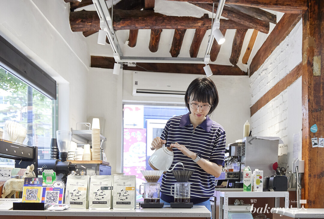 ‘스페셜티 커피 1세대’, ‘서울 3대 커피’ 등 여러 수식어가 붙는 카페, ‘나무사이로(Namusairo)’. 2002년 가을, 서울 신림동에서 처음 시작해 현재는 서울 내자동에 자리하고 있다. 어느덧 22년의 역사를 간직 하고 있는데, 상호처럼 곧게 뻗은 나무 사이로 매장이 등장한다. 나무 사이로는 ‘나무사이로 흐르는 길’의 준말로, ‘길’이라는 곡에서 따왔 다. “자연의 소중함을 깨우치며 지속가능성을 추구하고자 하는 마음을 담았다”고 목은혜 팀장은 이야기했다. 스페셜티 커피는 특별한 커피가 아닌 인간과 관계하는 모든 것을 포괄하는 커피라고 생각한다는 배준선 대표. 나무사이로는 자연, 기후, 노동, 다양성, 인류애 등을 커피에 담아내고 있다.